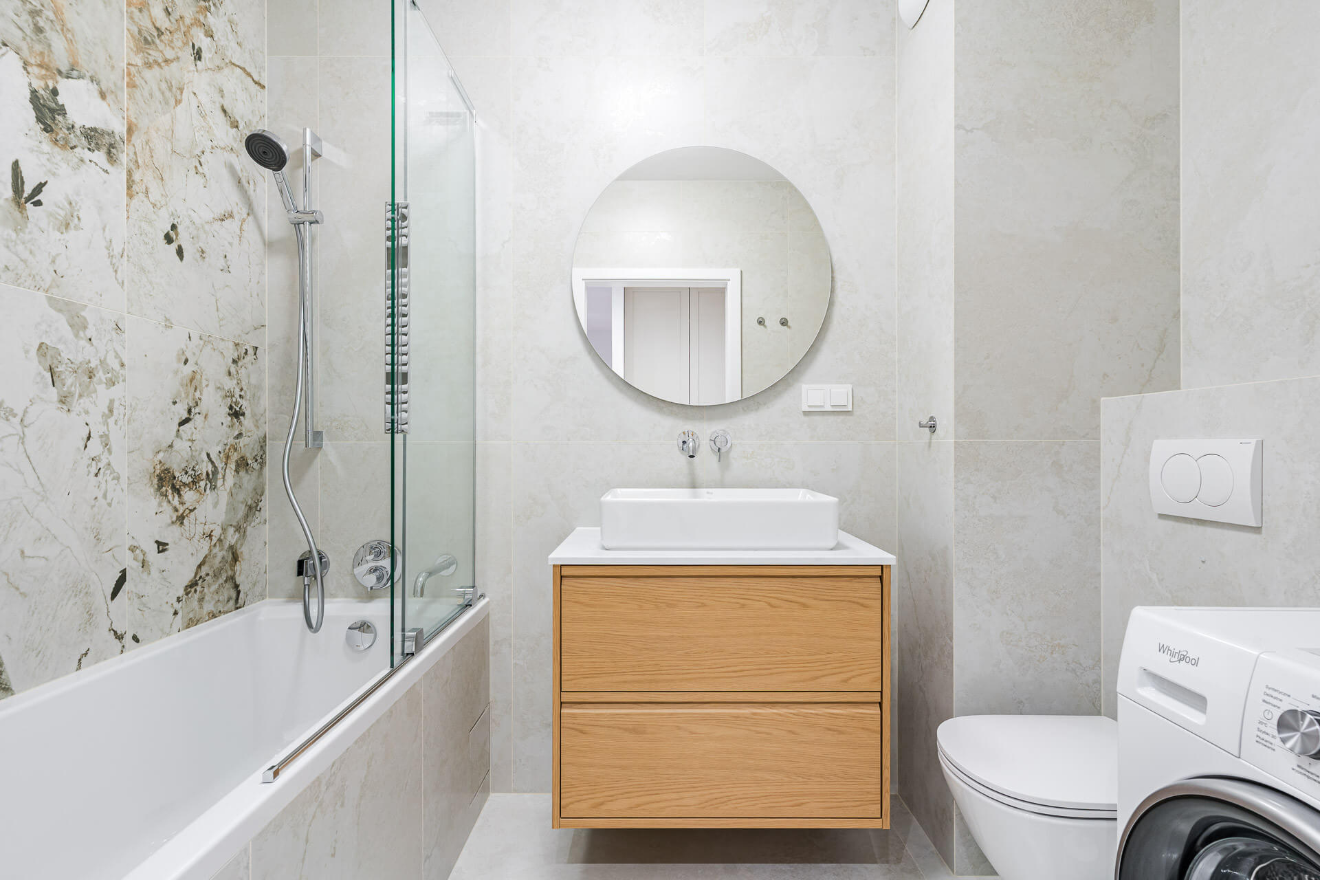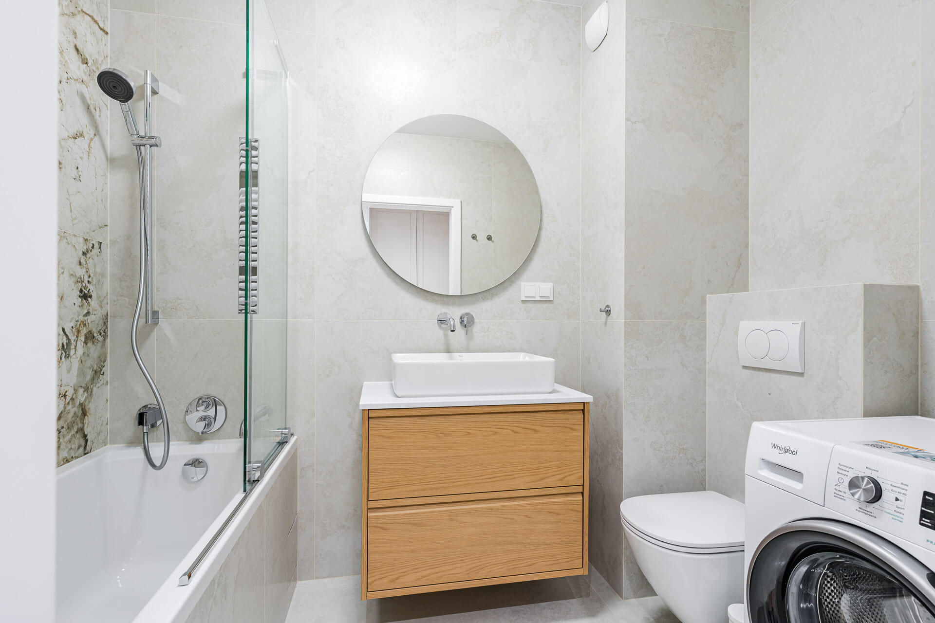 – łazienki z wanną armaturą podtynkową Hansgrohe, miejscem na zabudowę pralki- został przeniesiony grzejnik