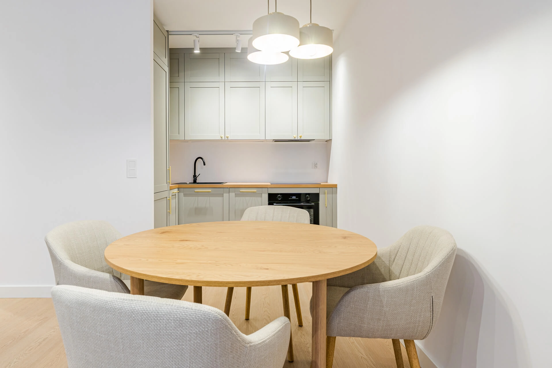 Na podłogach panele lamelowane wodoodporne firmy Pergo, w łazience płytki Tubadzin, drzwi Porta z zamkami magnetycznymi.