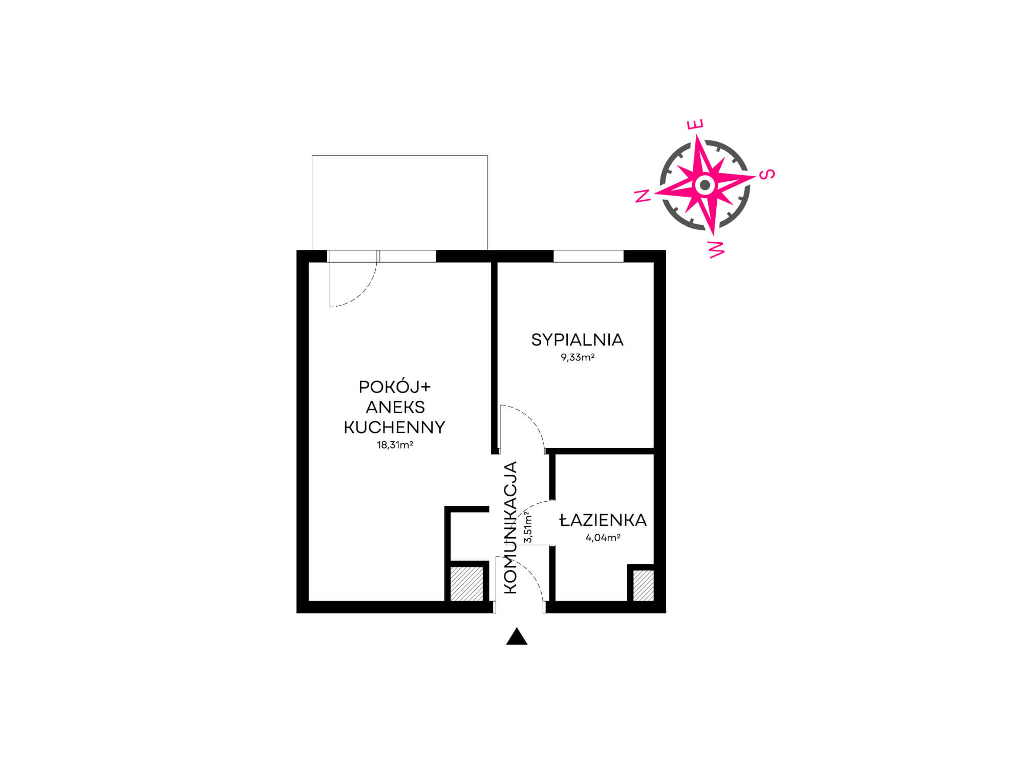 – salonu z częścią jadalnianą oraz wyjściem na balkon 4,49 m2 ekspozycja zachodnia
