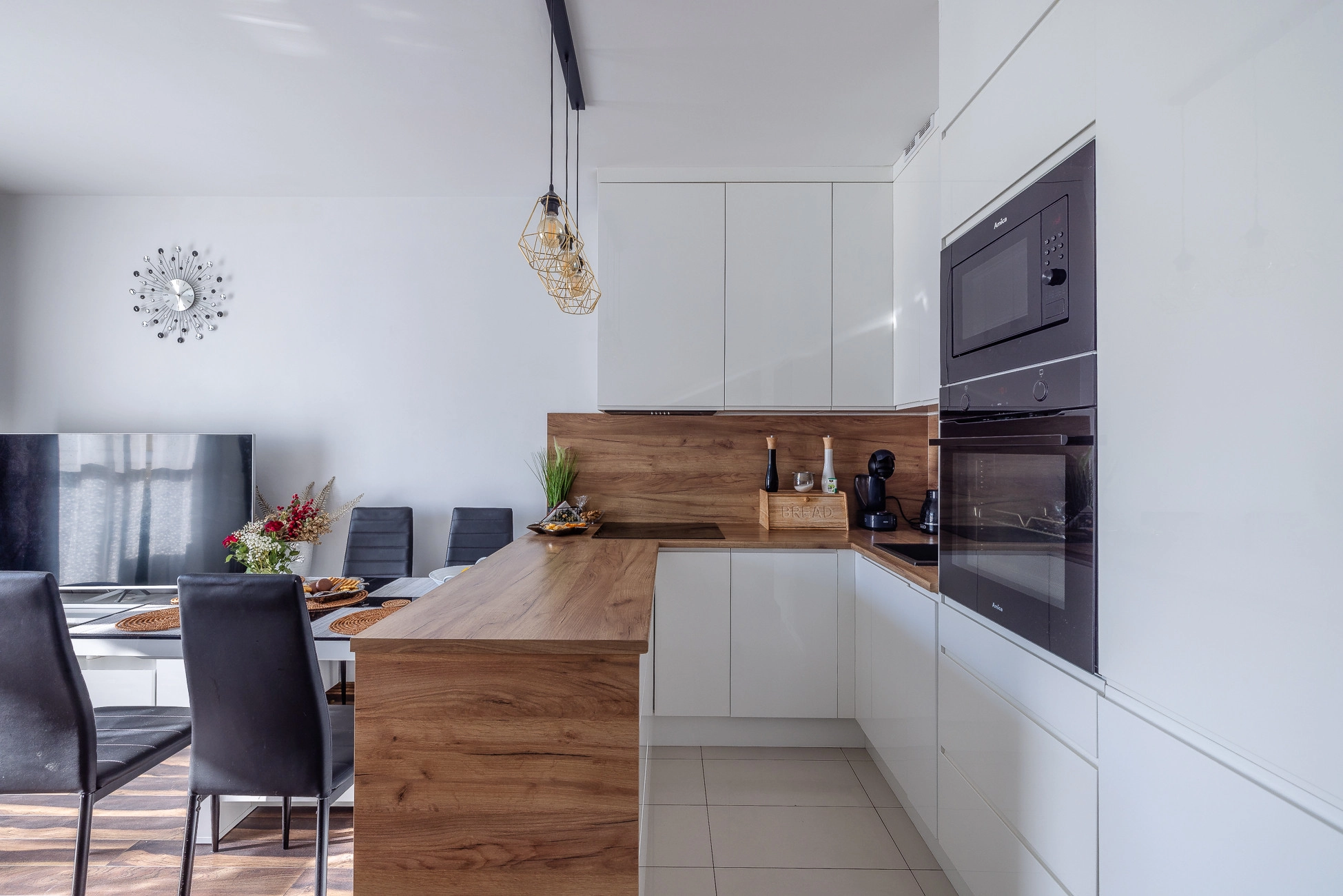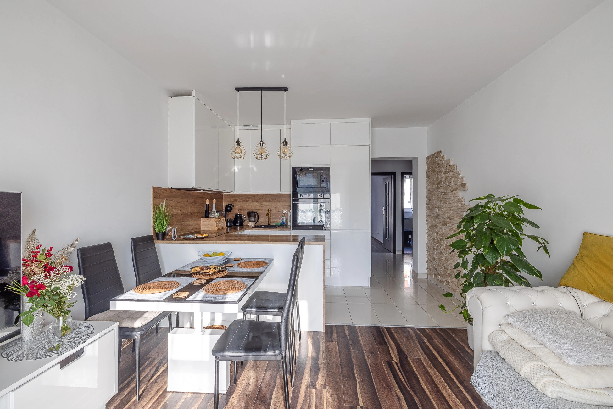– przestronnego i komfortowego salonu z wysokiej jakości zabudową kuchenną oraz sprzętami AGD