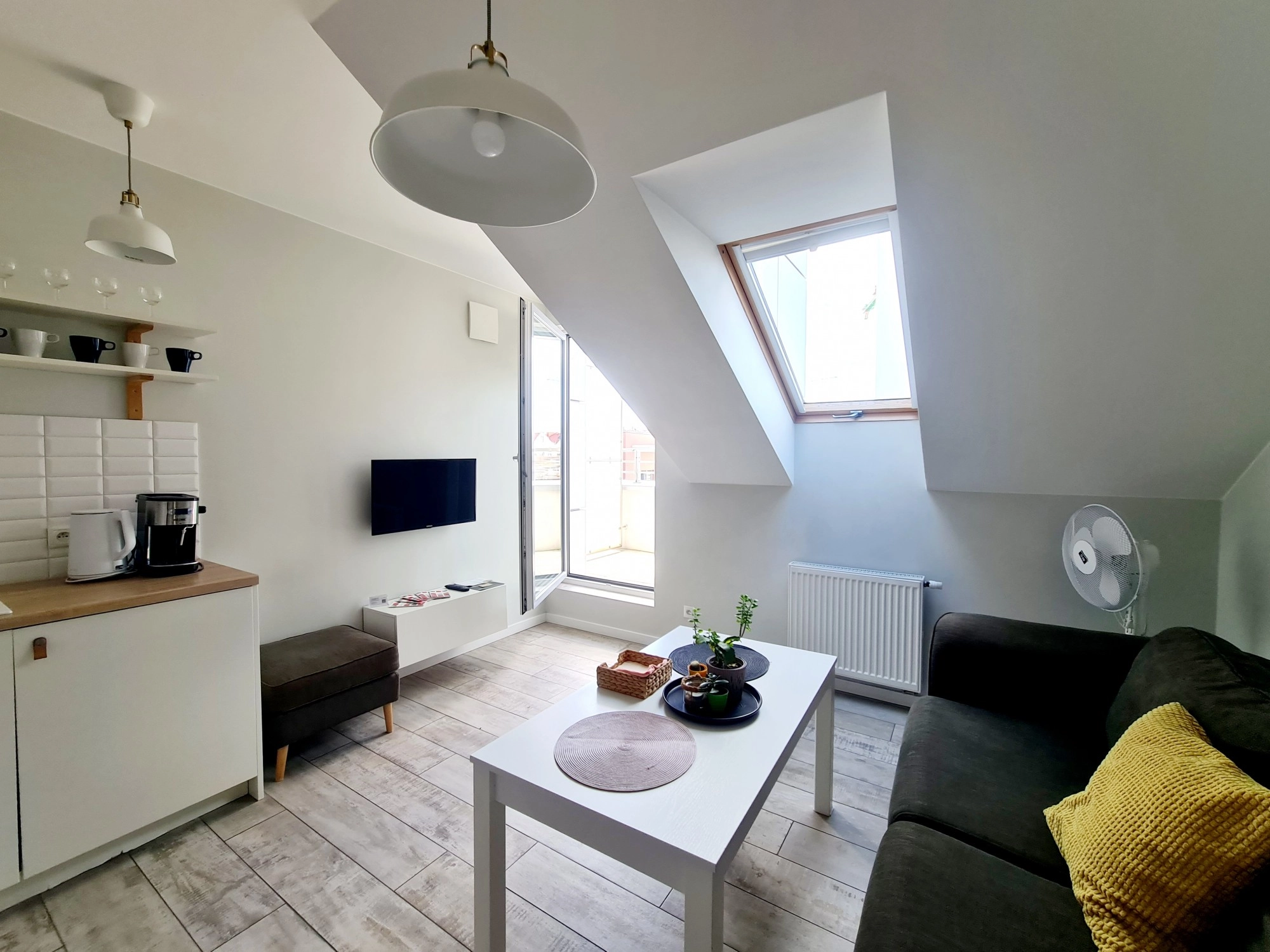 Nowoczesny i przytulny apartament na poddaszu z pięknym panoramicznym widokiem z tarasu!