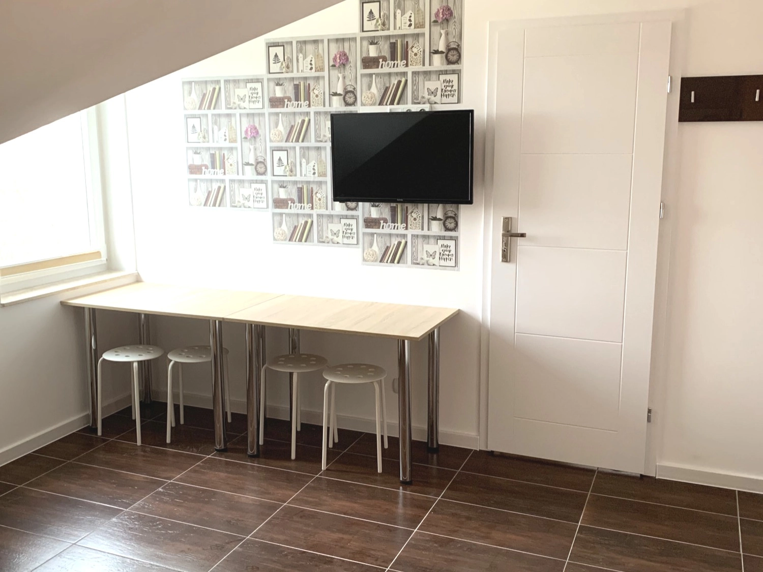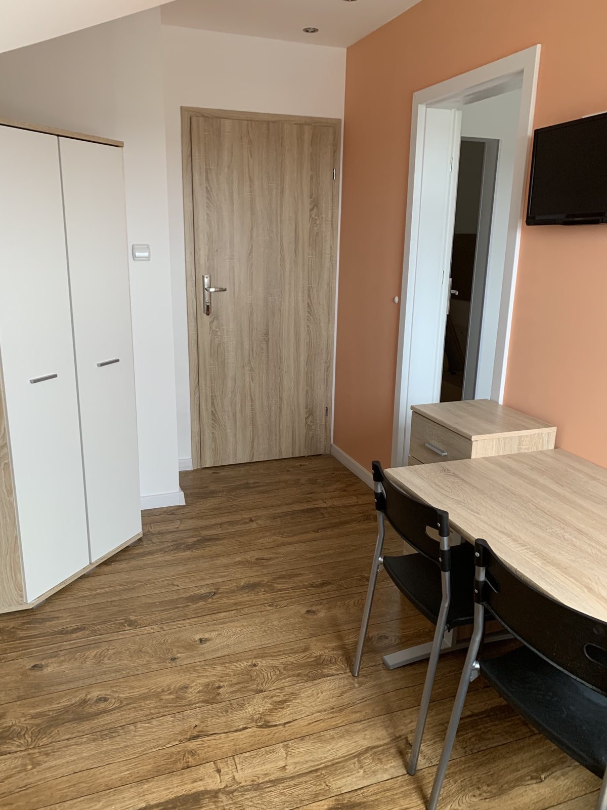 Nieruchomość składa się z dwóch połączonych budynków w zabudowie szeregowej o łącznej powierzchni całkowitej 474 m2 ( użytkowej 229,6 ) idealnie nadających się do prowadzenia pensjonatu. W skład nieruchomości wchodzi 6 apartamentów 2 pokojowych oraz 4-pokojowe mieszkanie dla właścicieli. Każdy z budynków posiada duży taras i 2 balkony. Natomiast tylko w jednym z budynków w bryle znajduje się garaż. Za budynkami mamy duży wspólny ogród, miejsce na grilla, plac zabaw.