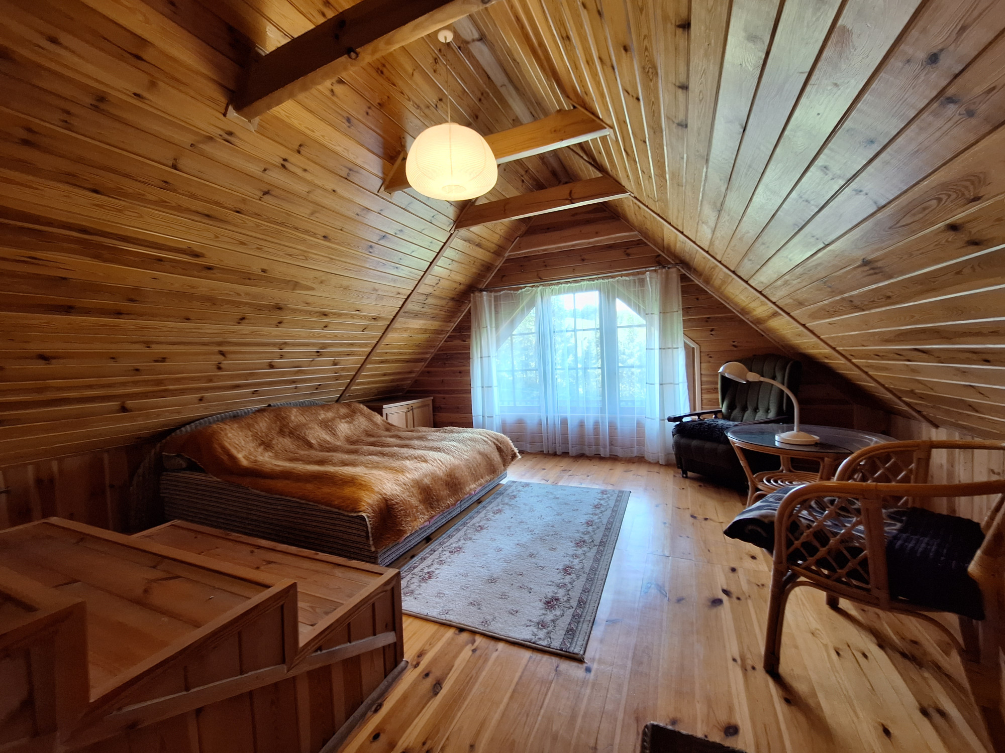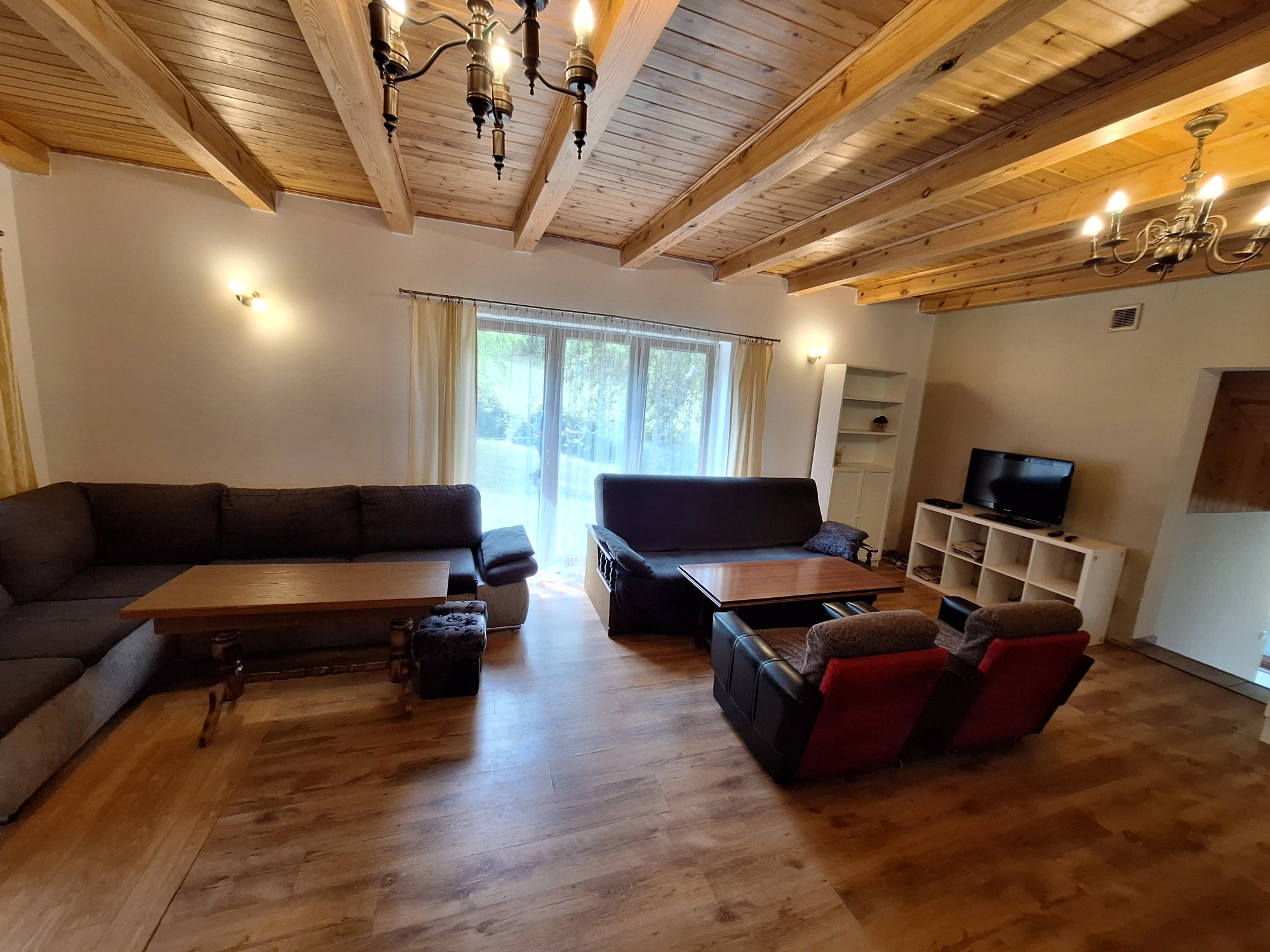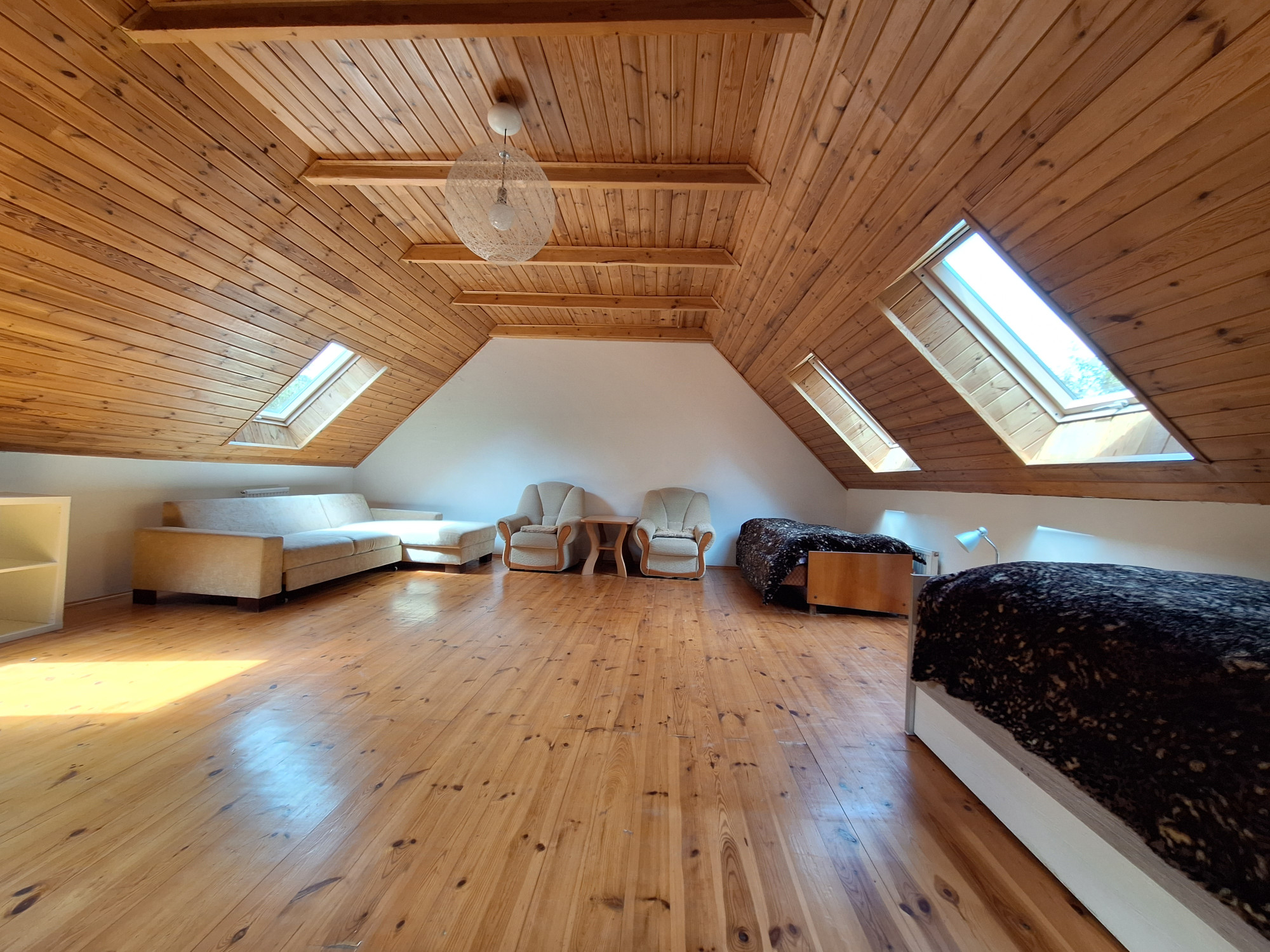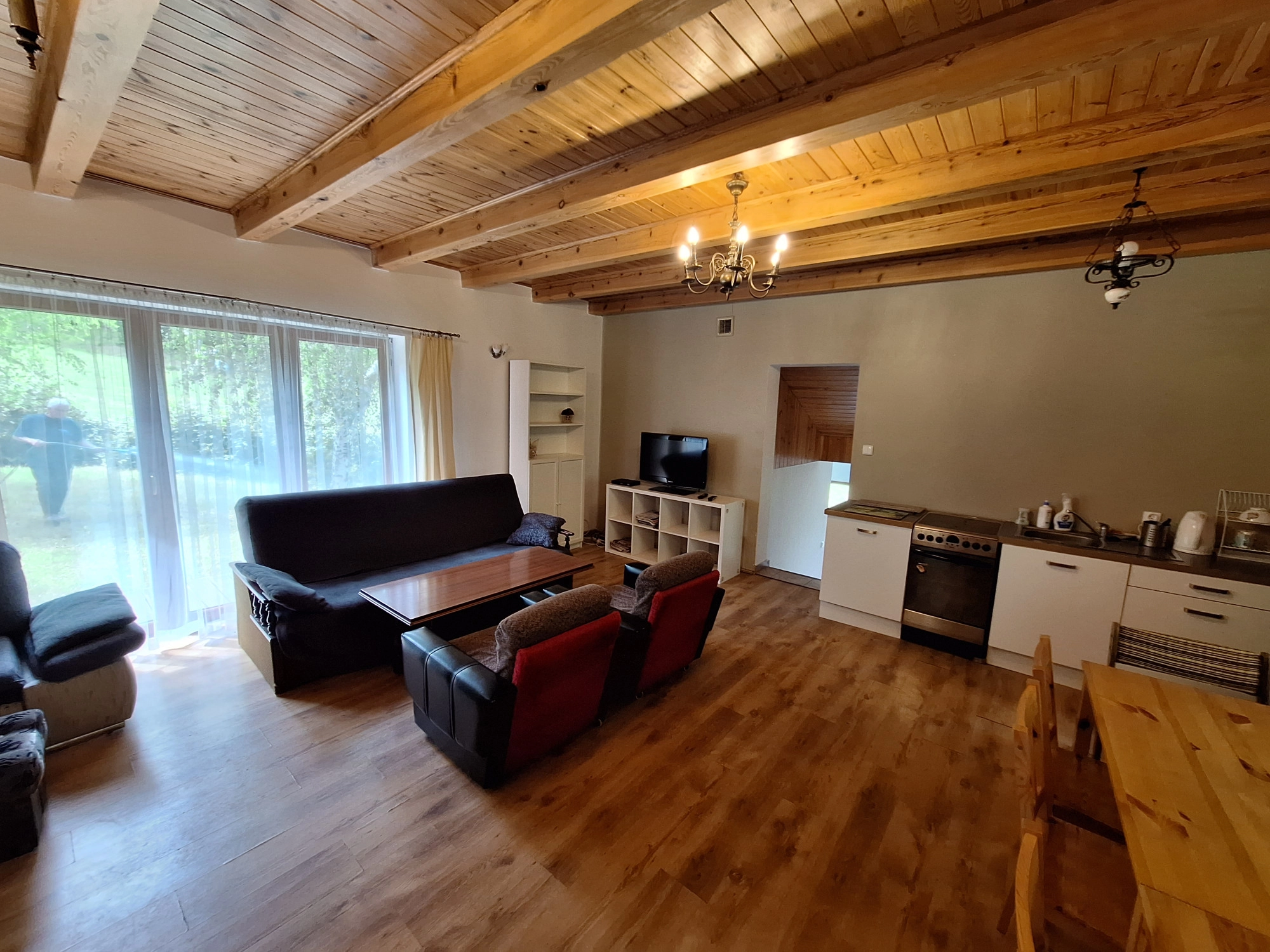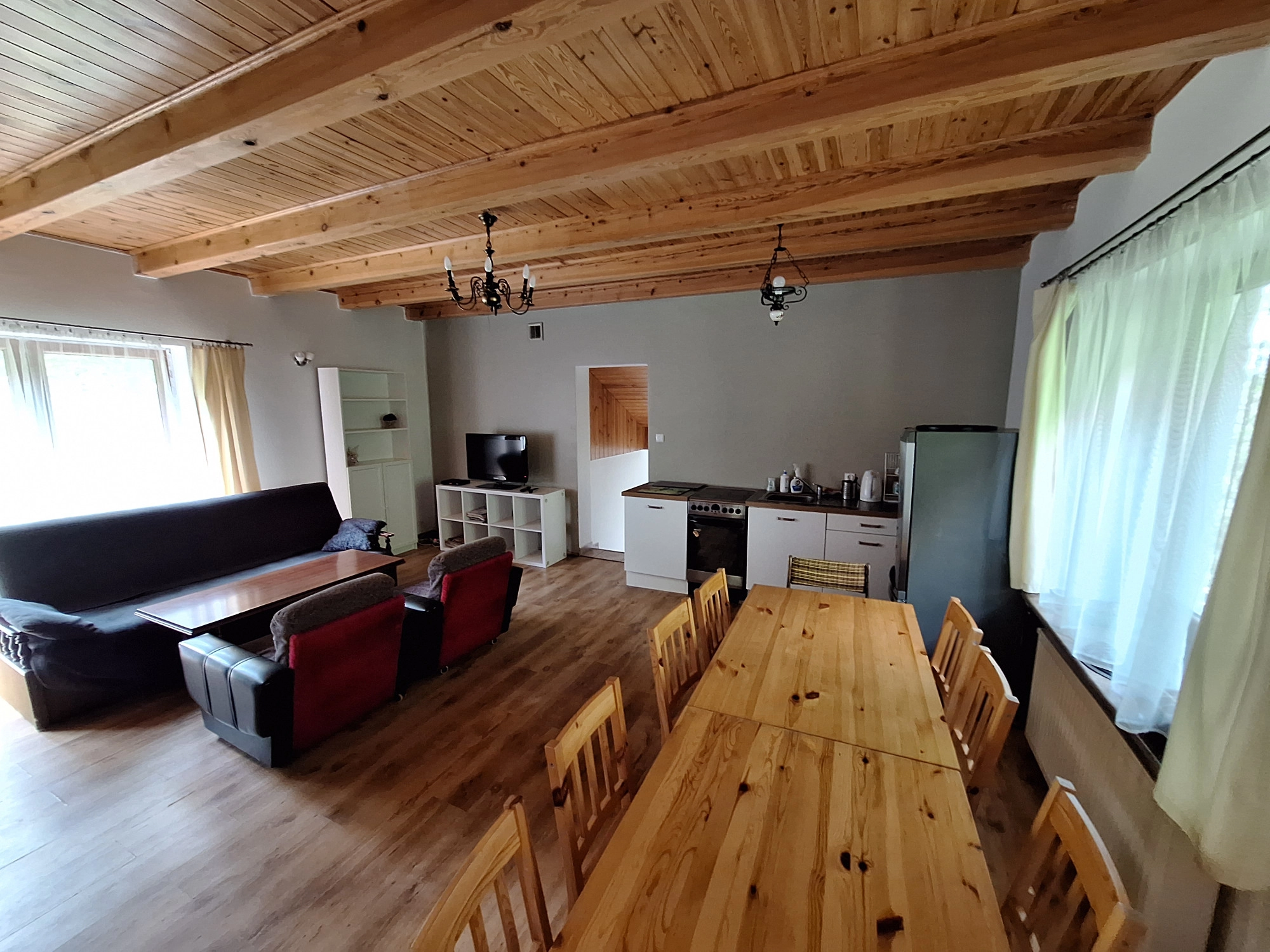 • z dużego salonu, z aneksem kuchennym który stanowi serce domu,