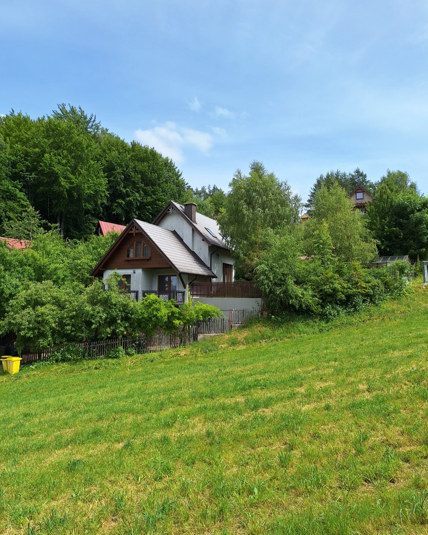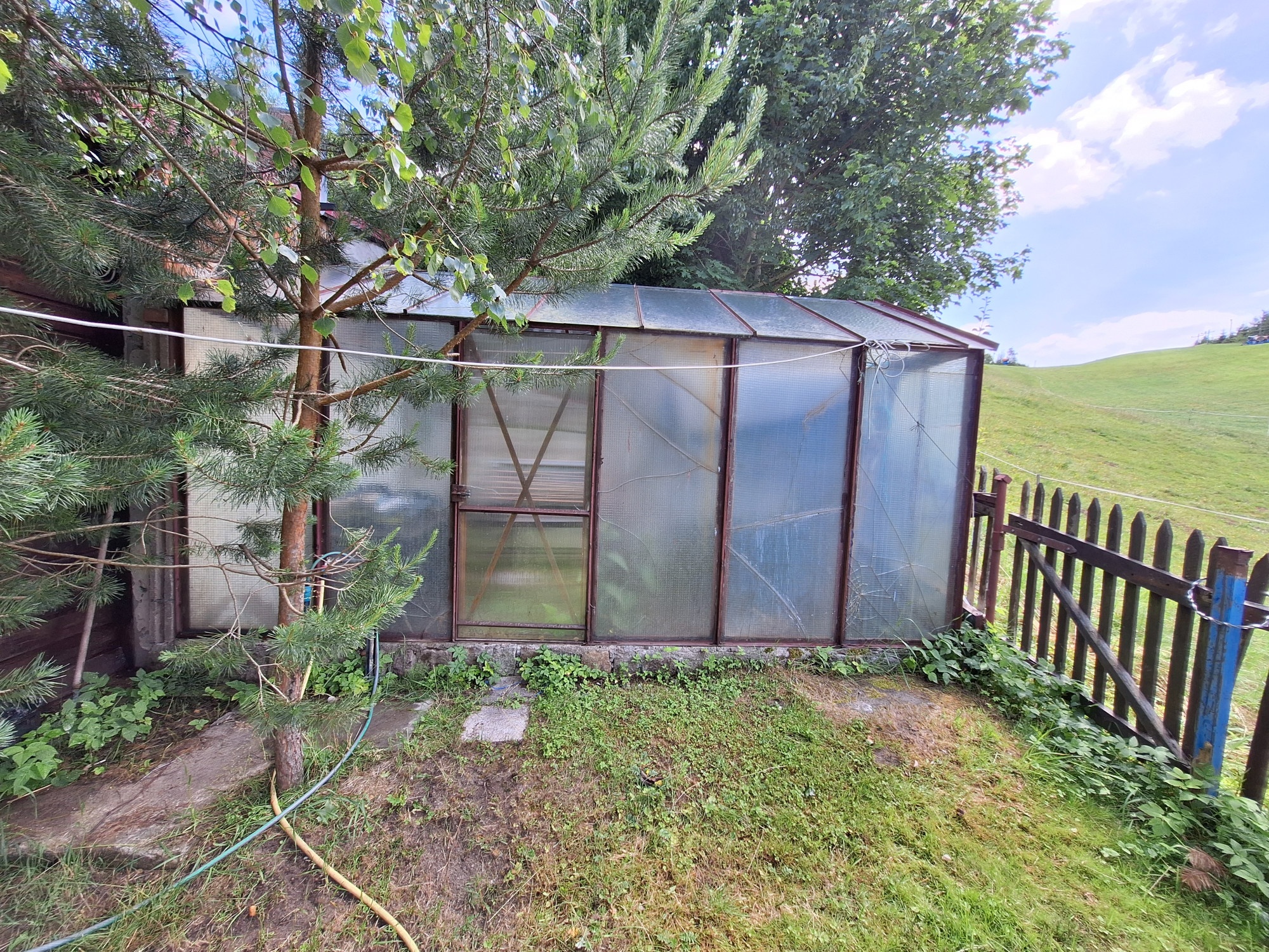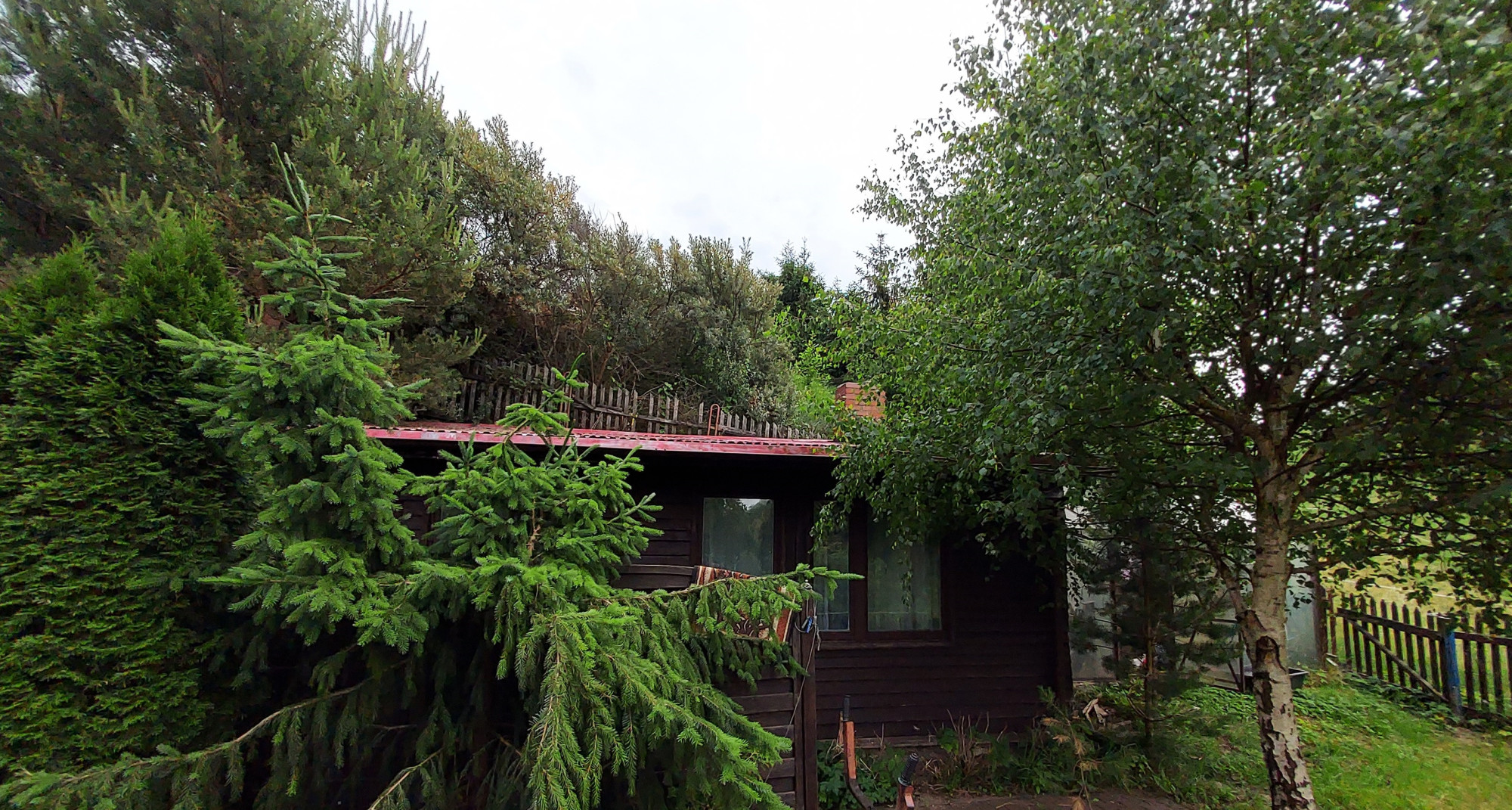 o powierzchni 515 m2 ogrodzona, z nasadzeniem drzew owocowych, szklarnią oraz dodatkowym domkiem całorocznym dla gości.