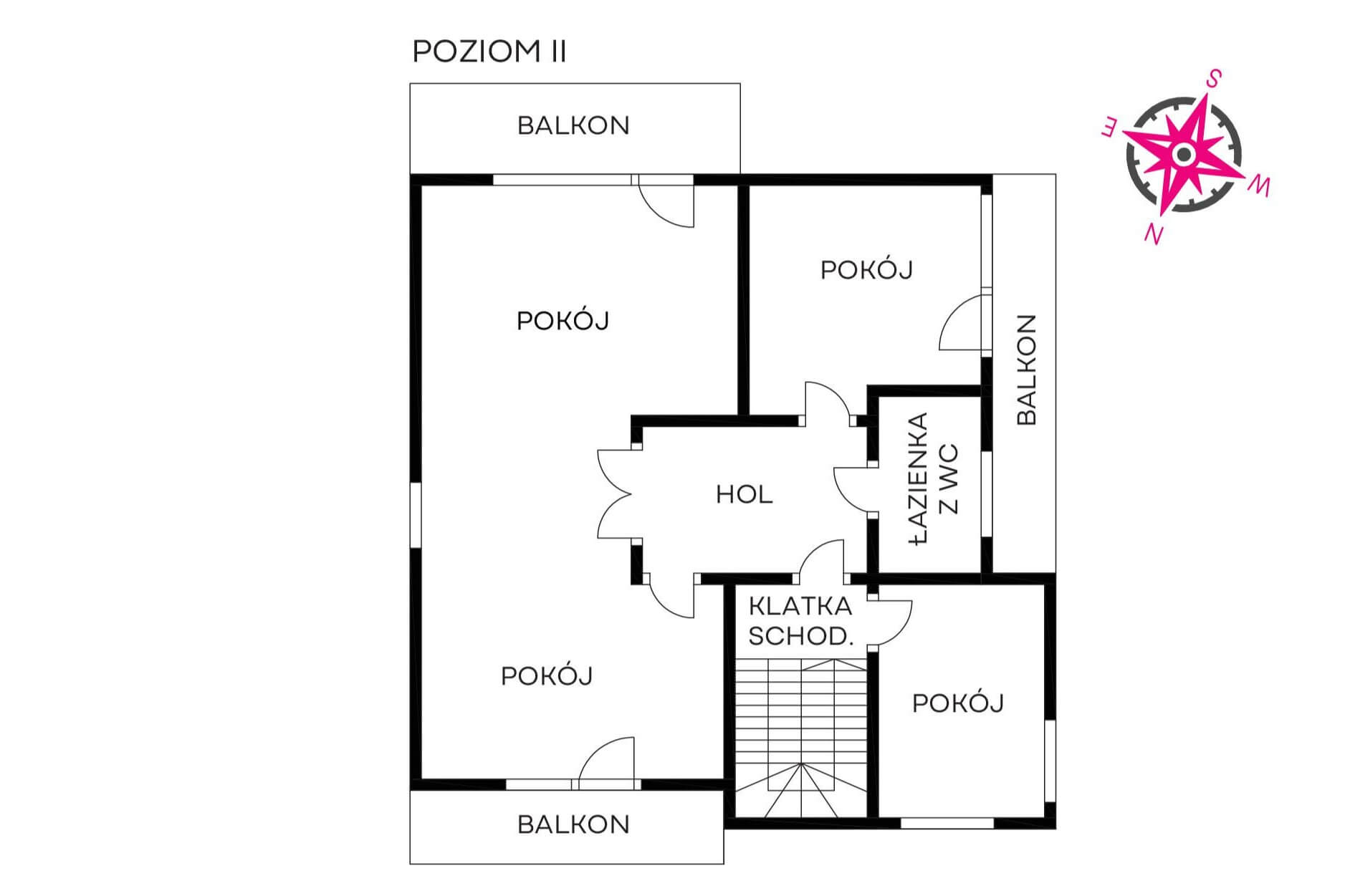 Klatka schodowa pozwala na utworzenie 3 oddzielnych mieszkań, po jednym na każdej kondygnajcji. Taki układ sprawia, że jest to idealna przestrzeń pod wynajem lub przestronny dom dla rodziny. Układ pomieszczeń pozwala na wyodrębnienie jeszcze większej liczby pokoi.