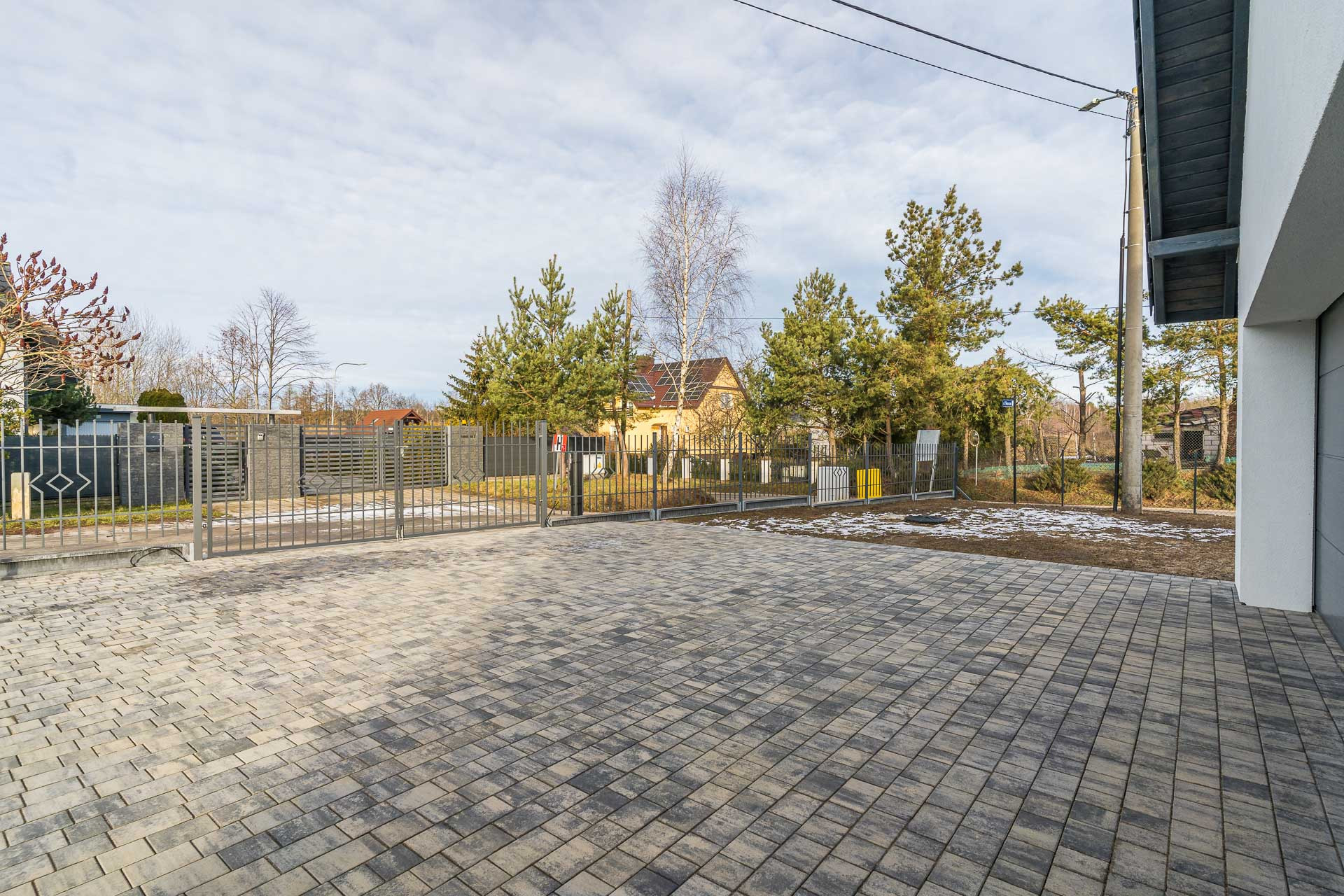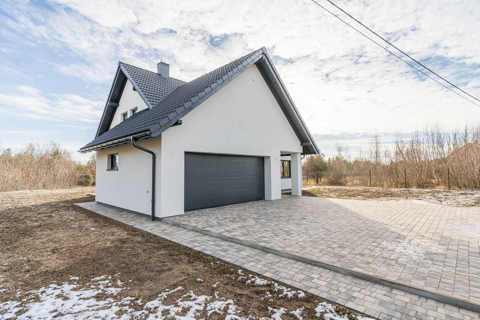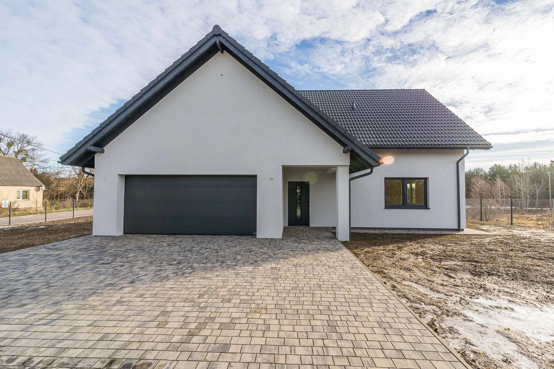 * Gotowe podjazdy i opaska z kostki brukowej wokół domu pozwalają od razu korzystać z przestrzeni.