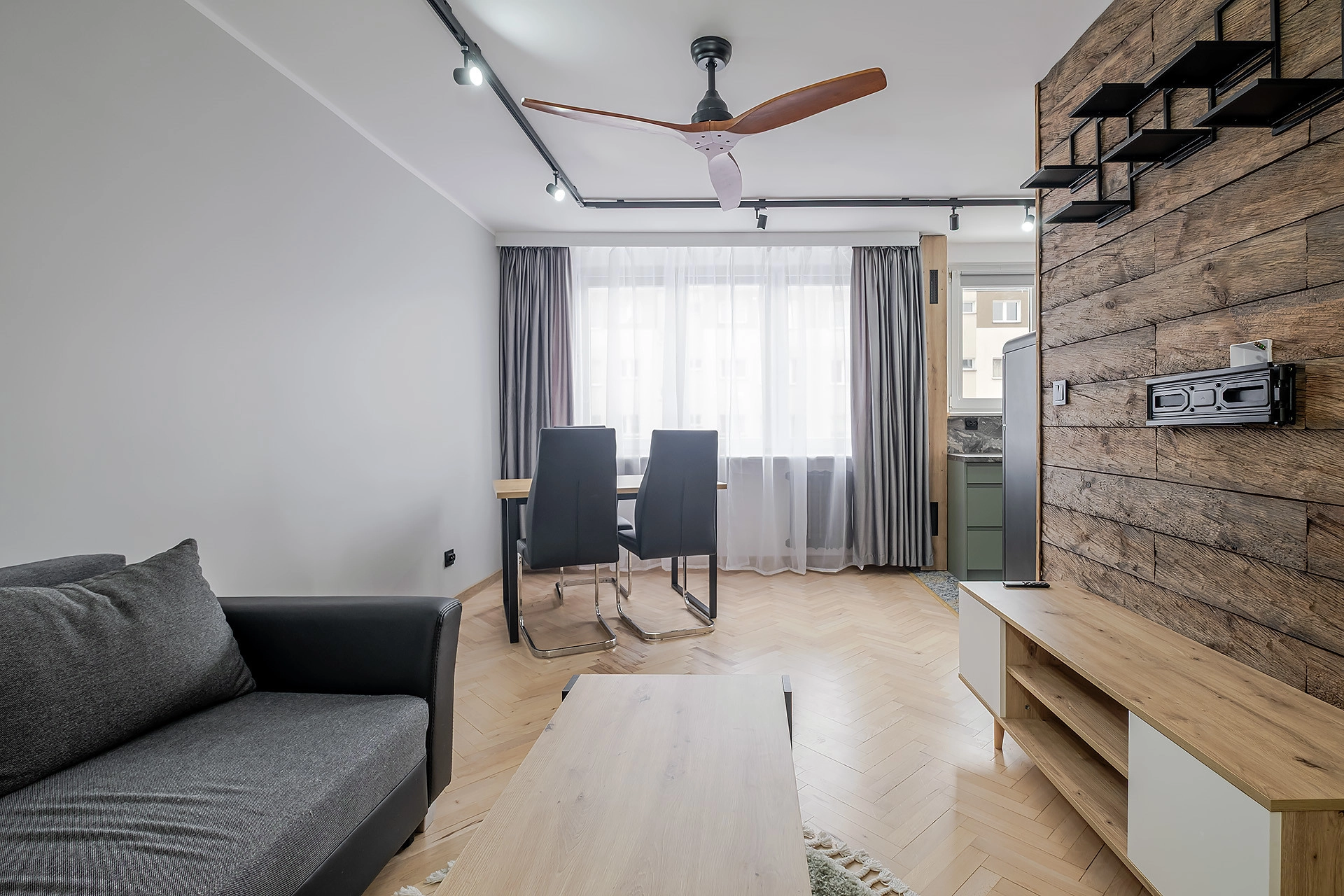 – pokój z aneksem kuchennym – kameralne miejsce do spędzania wspólnego czasu.