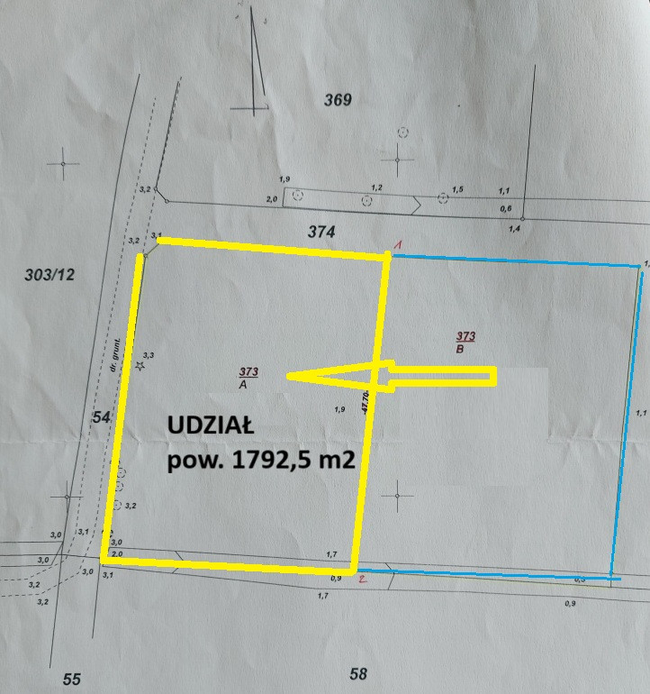 Przedmiotem sprzedaży jest udział w ogrodzonej działce o powierzchni 3585 m2, w części A wynoszącej 1792,5 m2.