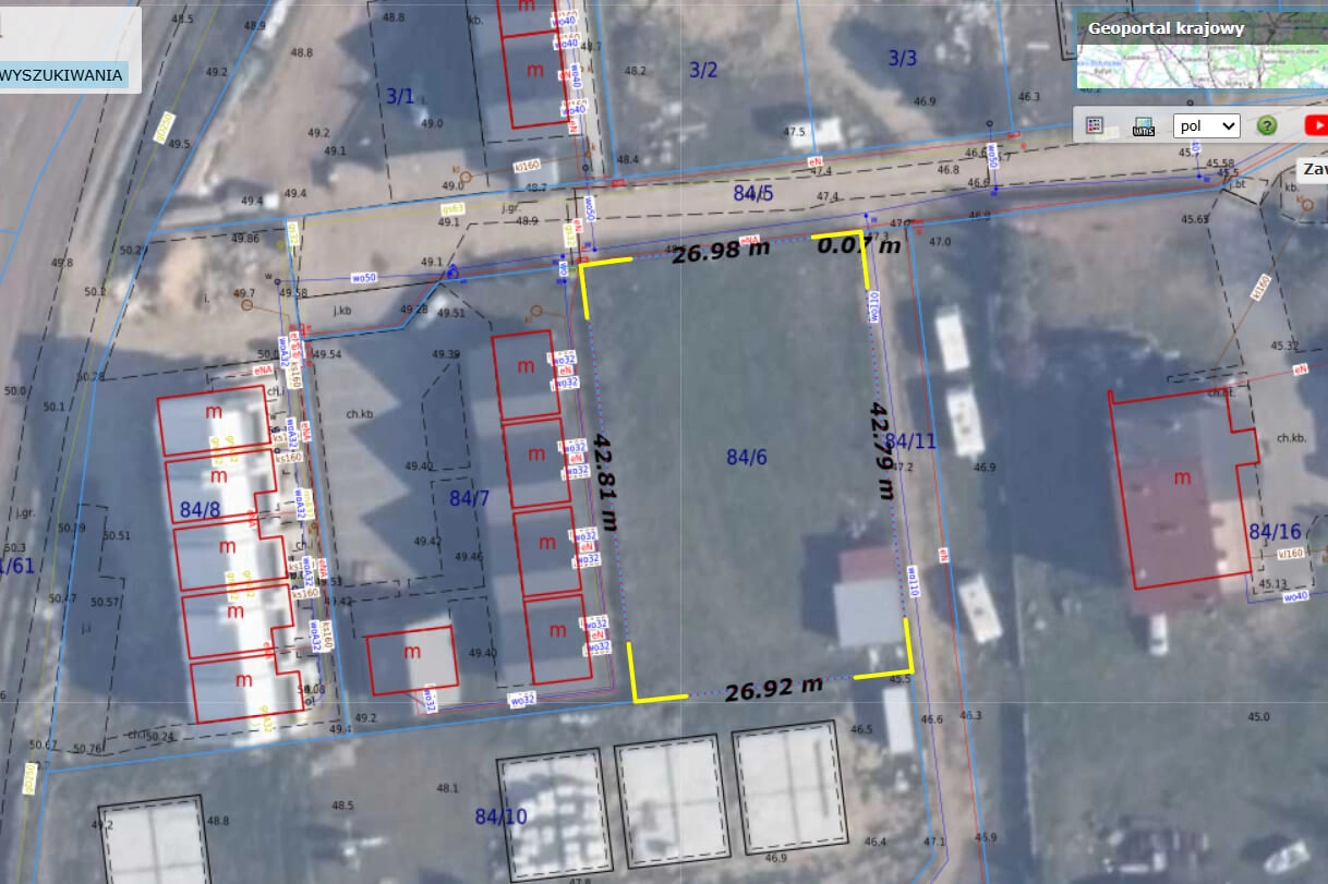 Prostokątna działka o powierzchni 1150m2 o numerze 84/6.