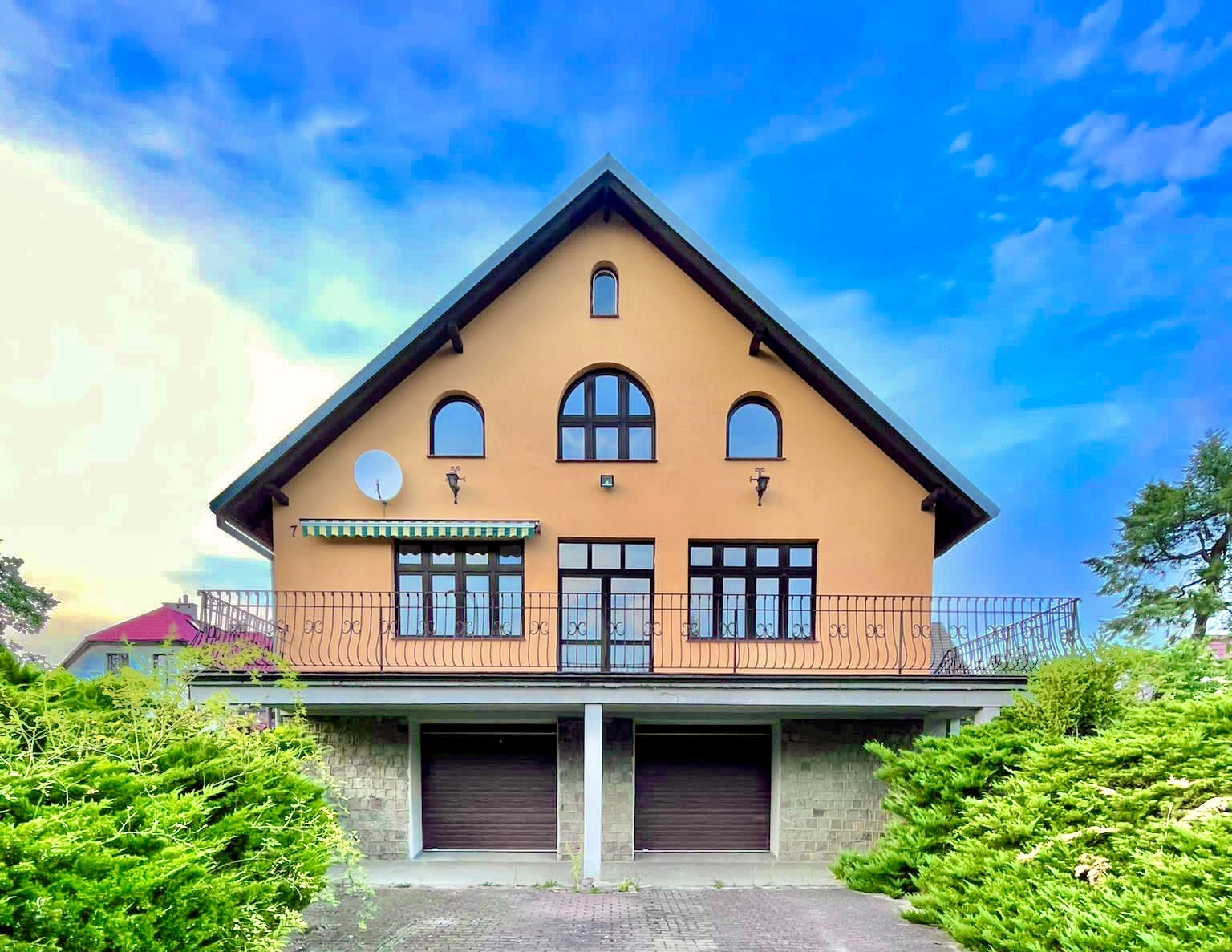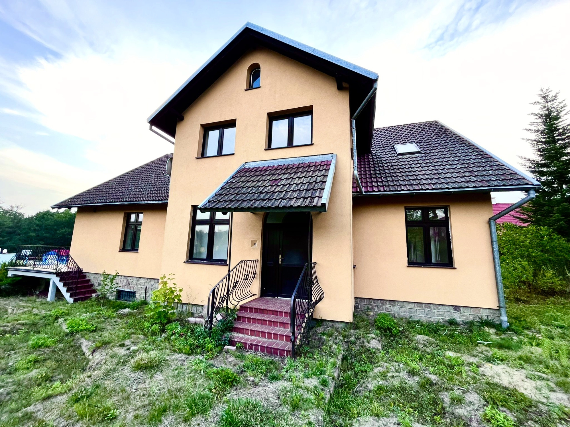 Duży, położony na lekkim wzniesieniu dom (337 m2 powierzchni użytkowej + pomieszczenia ze skosami), oraz domek gościnny (40 m2). Podjazd jest wyłożony kostką brukową, gdzie mogą zaparkować 2 auta. W nieruchomości jest możliwość prowadzenia działalności gospodarczej. Podłoga w drugiej kondygnacji oraz łazienkach wykończona jest płytkami, natomiast w trzeciej kondygnacji drewnianym parkietem. Okna plastikowe PCV. Na terenie działki jest instalacja fotowoltaiczna, która obniża rachunki za zużycie energii elektrycznej.