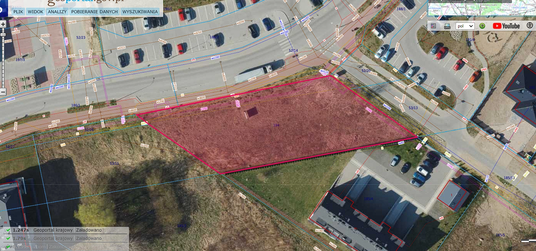 c) kąt położenia granic w stosunku do pasa drogowego – od 70 do 110 stopni;