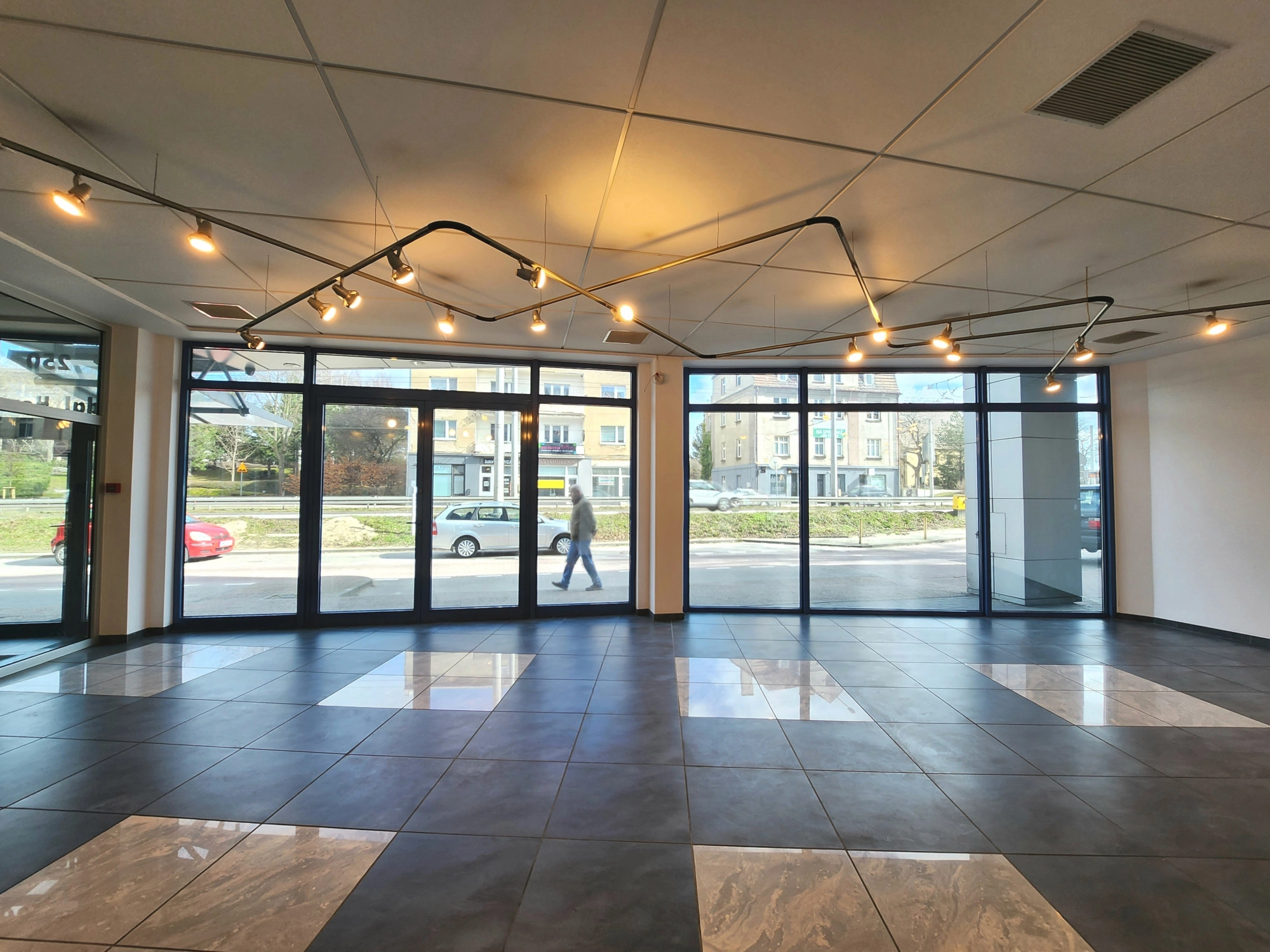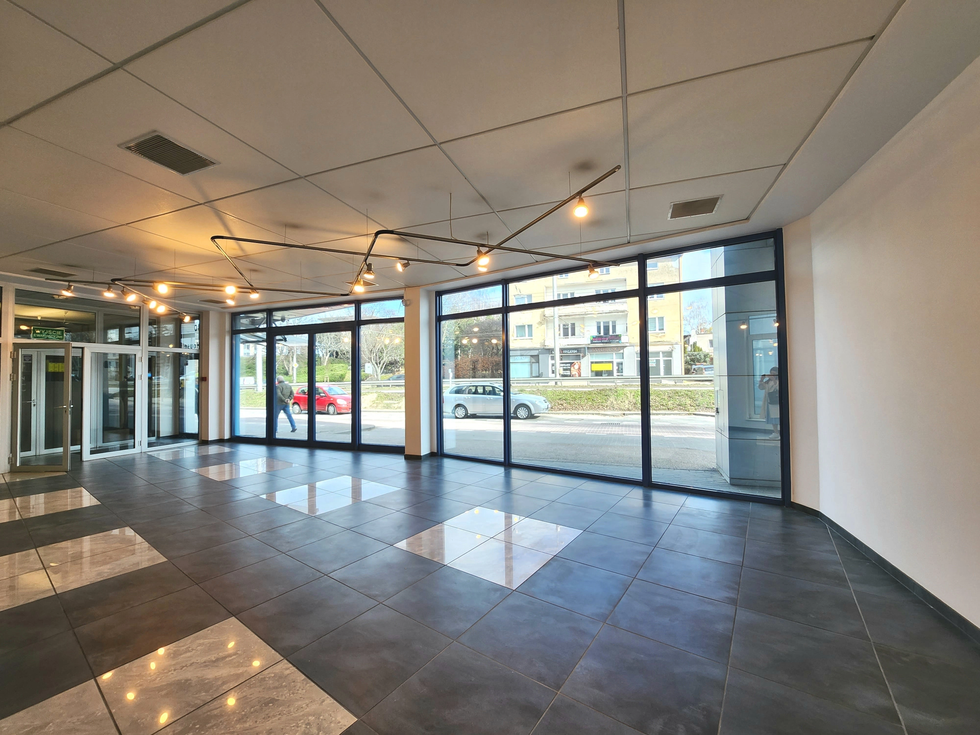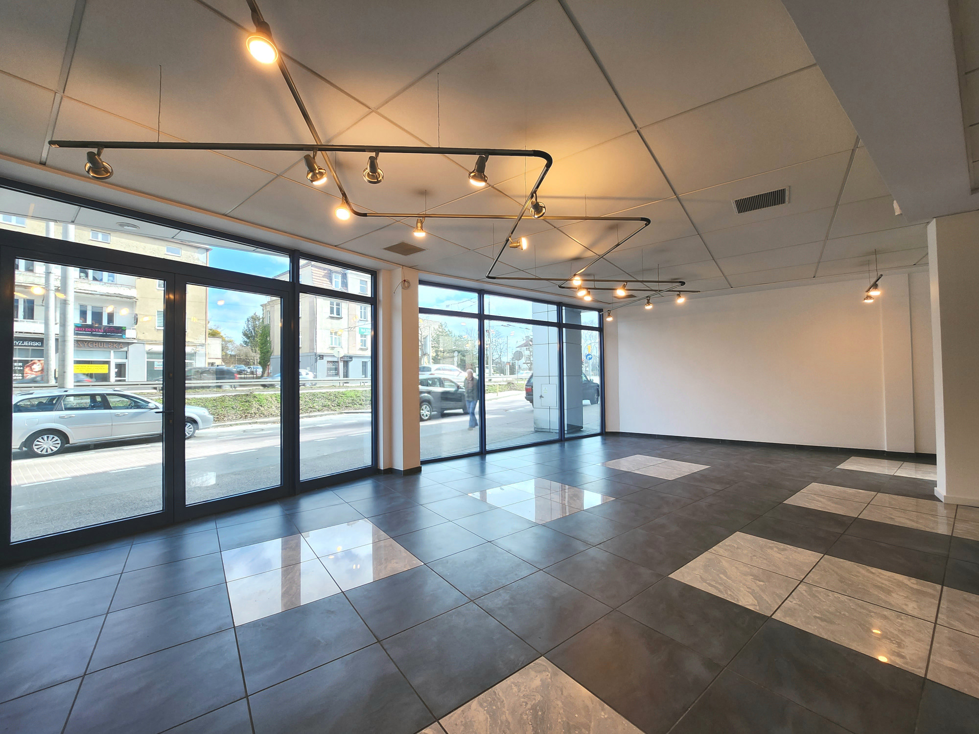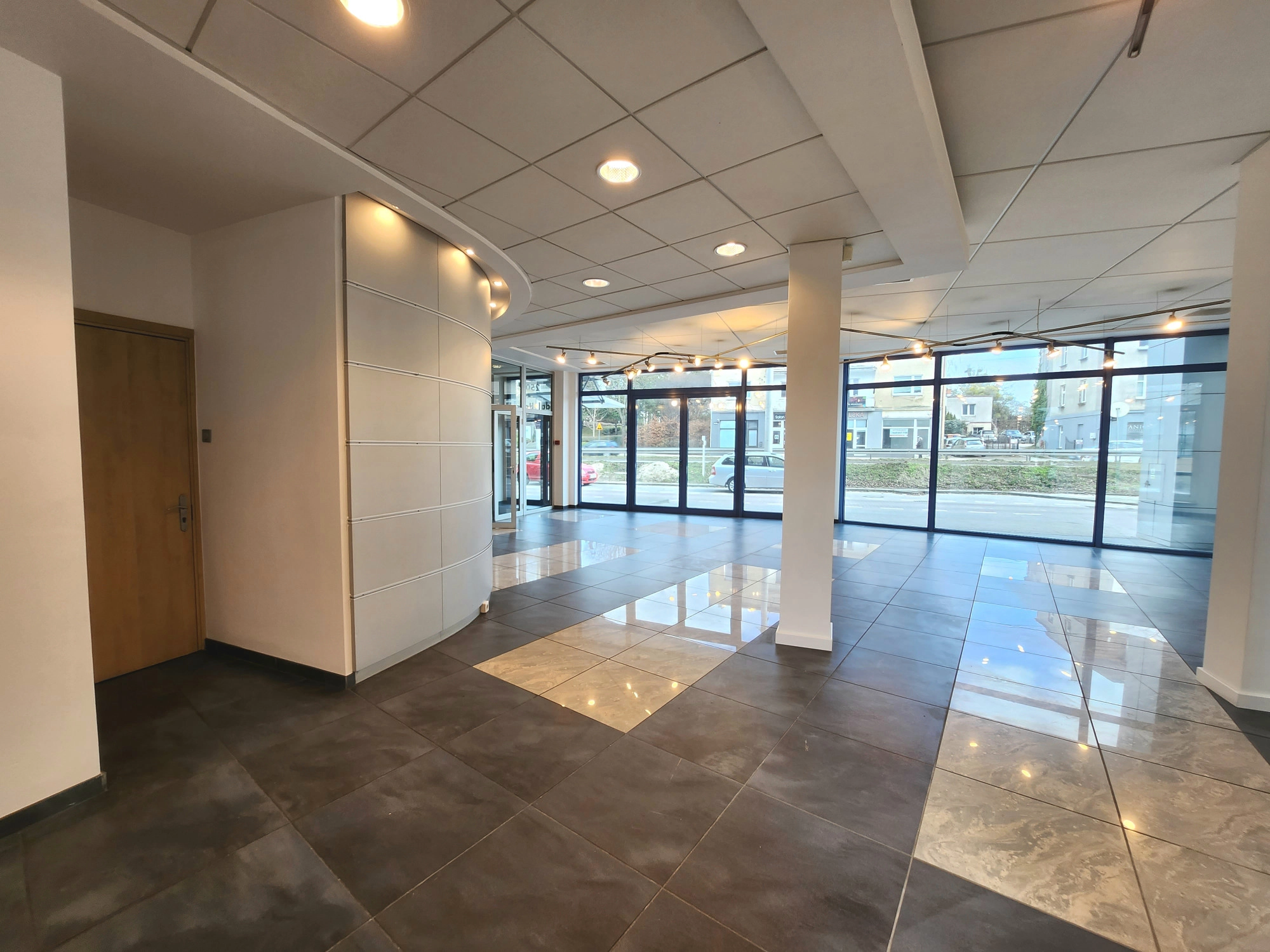 Lokal z witryną, o powierzchni użytkowej 92m2, znajduje się na 0/4 pięter budynku z 1999 roku. Budynek wyposażony w cichobieżną windę. Lokal posiada 2 osobne wejścia i składa się z: – Otwartej powierzchni ekspozycyjno-handlowej