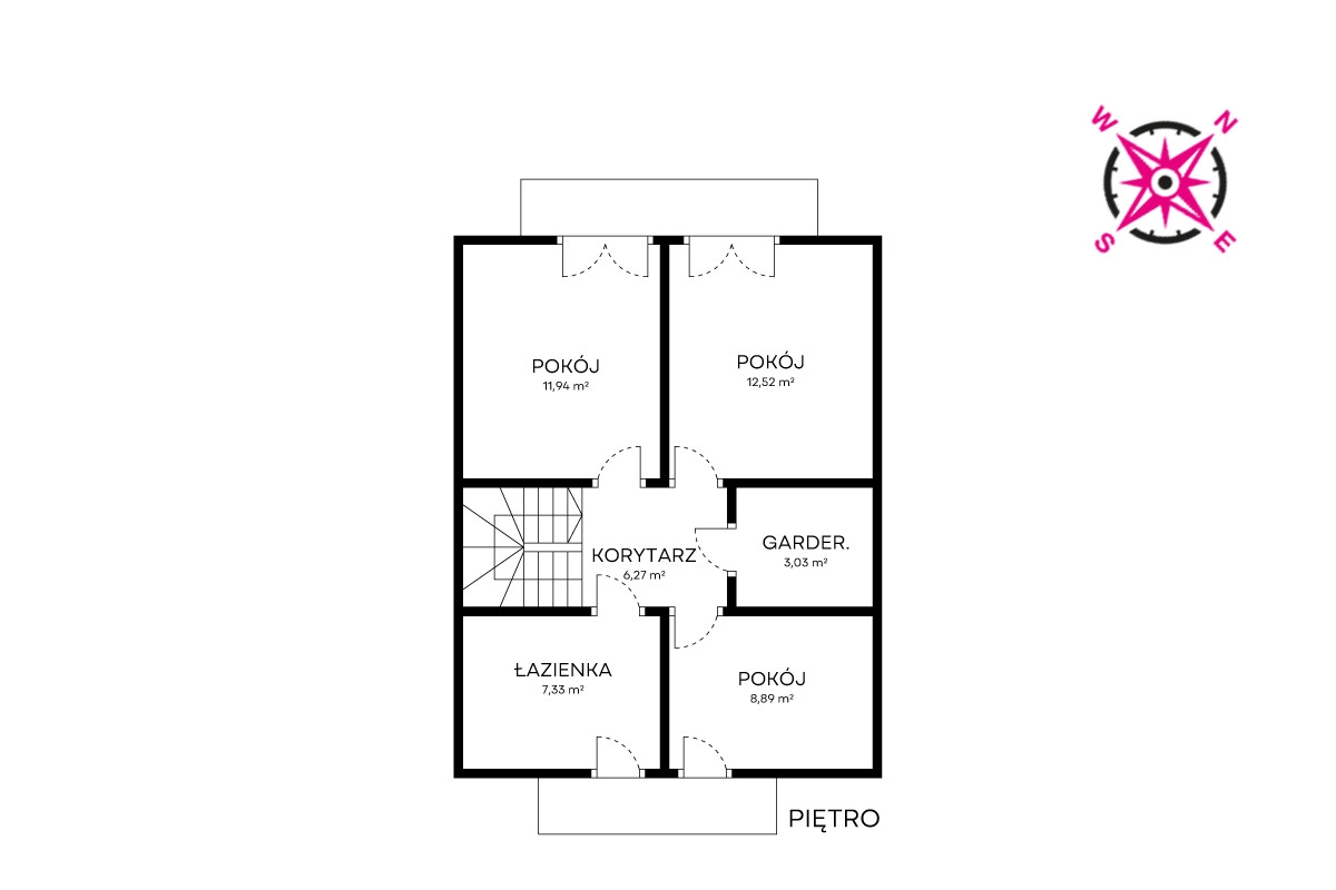 – trzy pokoje/sypialnie o powierzchniach około 13,69 m2, 14,27 m2 i 10,04 m2