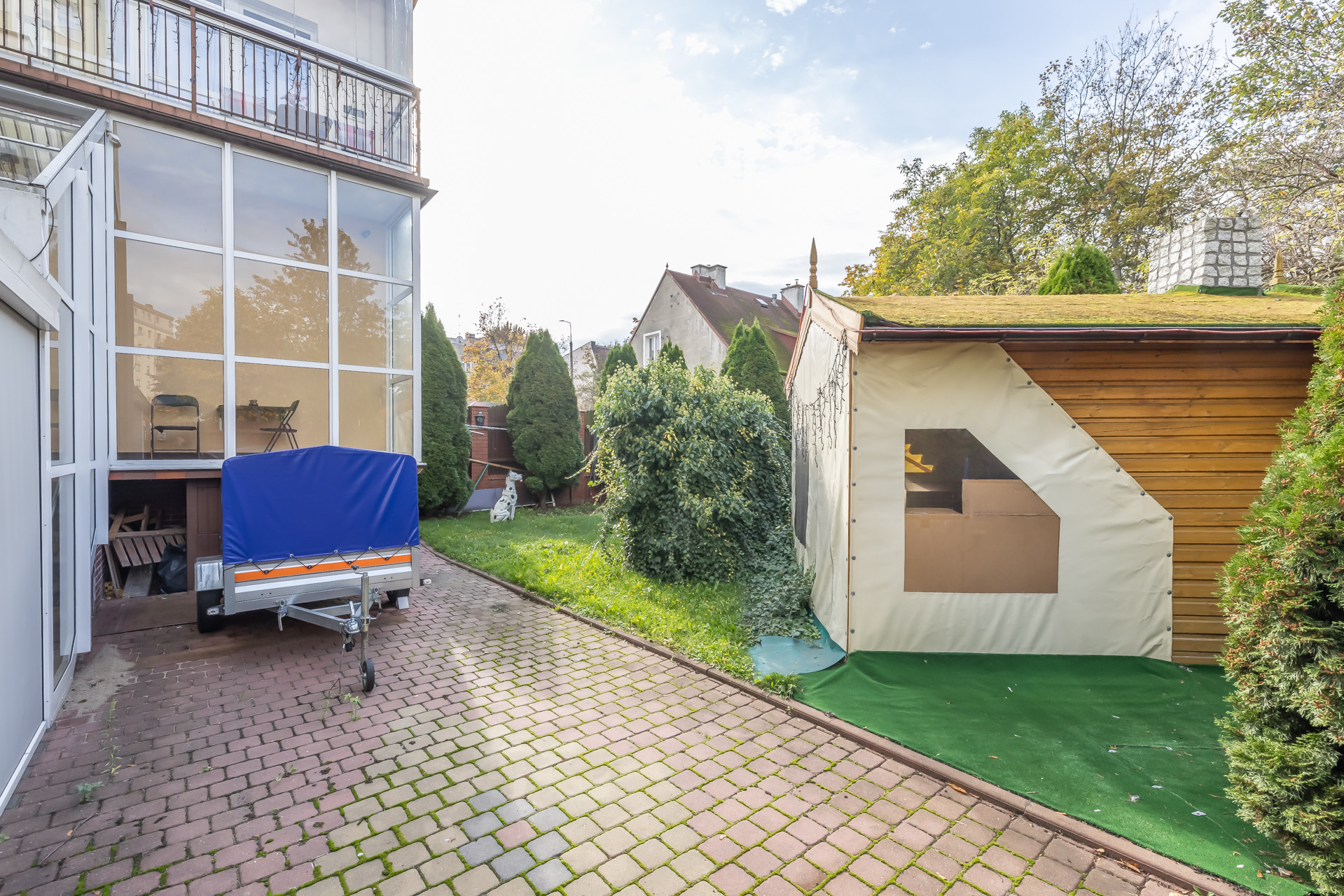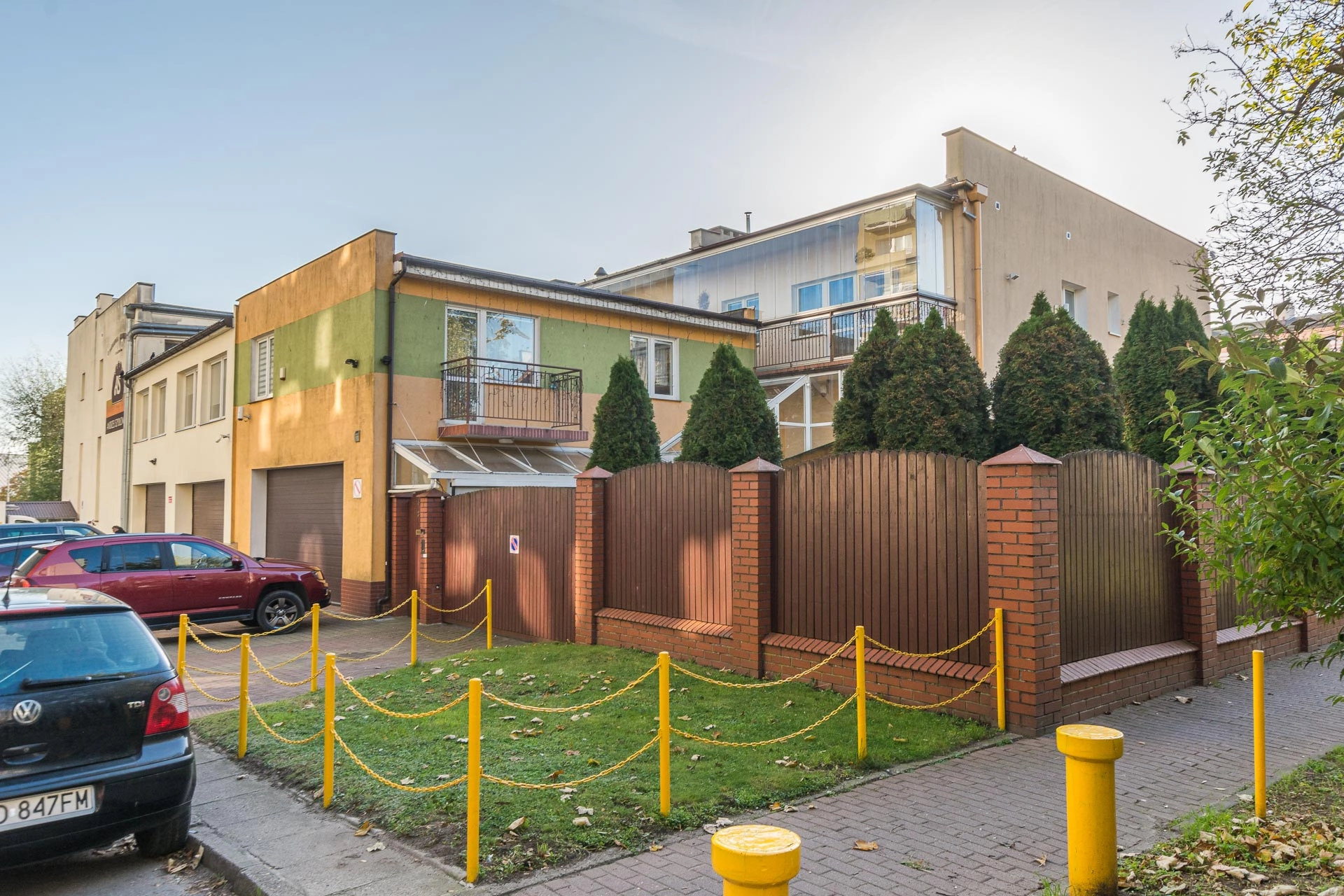 Obiekt posadowiony na działce o powierzchni 812m2, w kształcie prostokąta. Część mieszkalna budynku ogrodzona drewnianym płotem, na betonowej podmurówce z automatyczną bramą wjazdową.  W części mieszkalnej  wydzielony ogród rekreacyjny  z domkiem ogrodowym. Podjazd przed budynkiem wyłożony kostką brukową. Działka uzbrojona w sieć: wodociągową, kanalizacji sanitarnej, kanalizacji deszczowej, elektroenergetyczną, gazową, ciepłowniczą i teletechniczną.