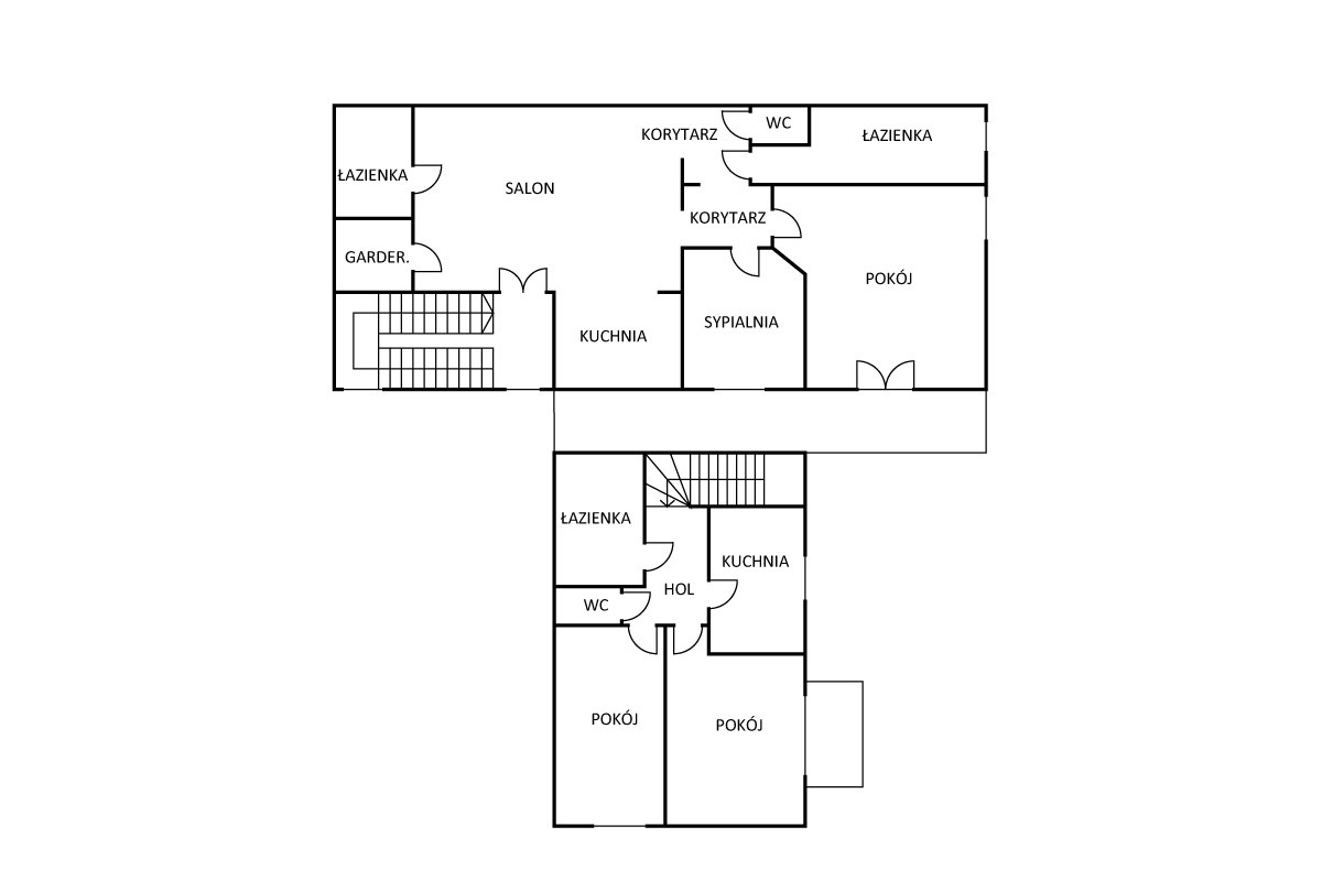 Kuchnia, sypialnia, sypialnia, łazienka, wc