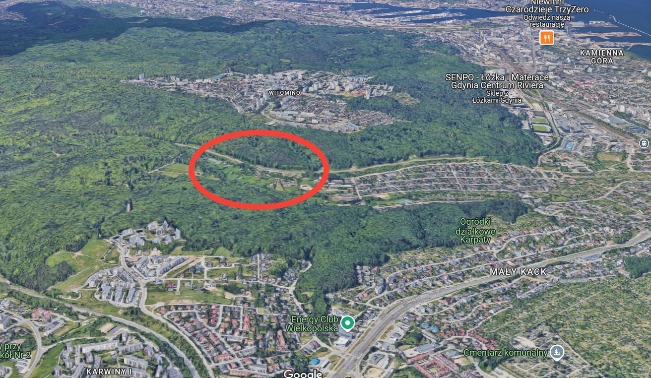 Mały Kack to południowa dzielnica Gdyni granicząca m.in. z Witominem, Redłowem, Orłowem, Karwinami, a od południa także z Sopotem. Ta część Małego Kacka to cicha, spokojna i zielona okolica. Dookoła tereny zielone oraz pełna infrastruktura handlowo-usługowa. Otulina Trójmiejskiego Parku Krajobrazowego zapewnia komfort życia osobom ceniącym sobie życia w połączeniu z naturą. Działka w pobliżu rezerwatu Kacze Łęgi, Lasów Witomińskich, jednym bokiem położona na brzegu rzeczki Kacza.