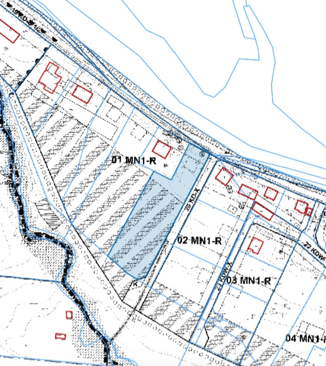 Działka objęta Miejscowym Planem Zagospodarowania (Nr 1606, uchwała XXIV/566/08) na obszarze oznaczonym symbolem MN1-R, czyli zabudowa jednorodzinna wolnostojąca, strefa rezydencjalna. Wybrane zapisy z planu to:
