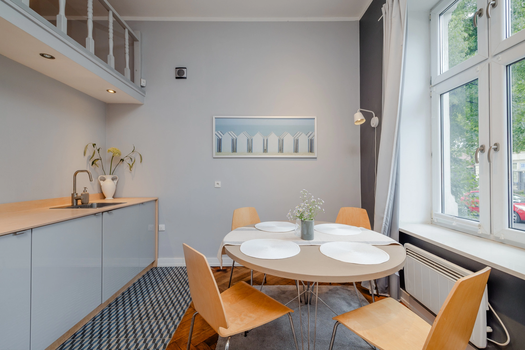 Nieruchomość znajduję się na parterze kamienicy z 1900 roku, wybudowanej z cegły, która mieści się na ulicy Jaśkowej, jednej z najstarszych ulic Gdańska. Ulica ta słynie z pięknych willi i pałacyków z XIX i początku XX wieku, które tworzą malowniczy krajobraz, a usytuowanie jej w dolinie między morenowymi wzgórzami, dodaje jej tylko uroku. Ogromną zaletą jest lokalizacja, ponieważ budynek znajduje się w bliskim sąsiedztwie Manhattanu oraz pozostałej infrastruktury, którą oferuje centrum Wrzeszcza, z którego autobusem, tramwajem bądź Skmk-ą bez problemu dotrzemy do każdej dzielnicy Gdańska, Sopotu czy Gdyni. Do centrum Gdańska czy Sopotu dojedziemy w zaledwie kilkanaście minut samochodem.