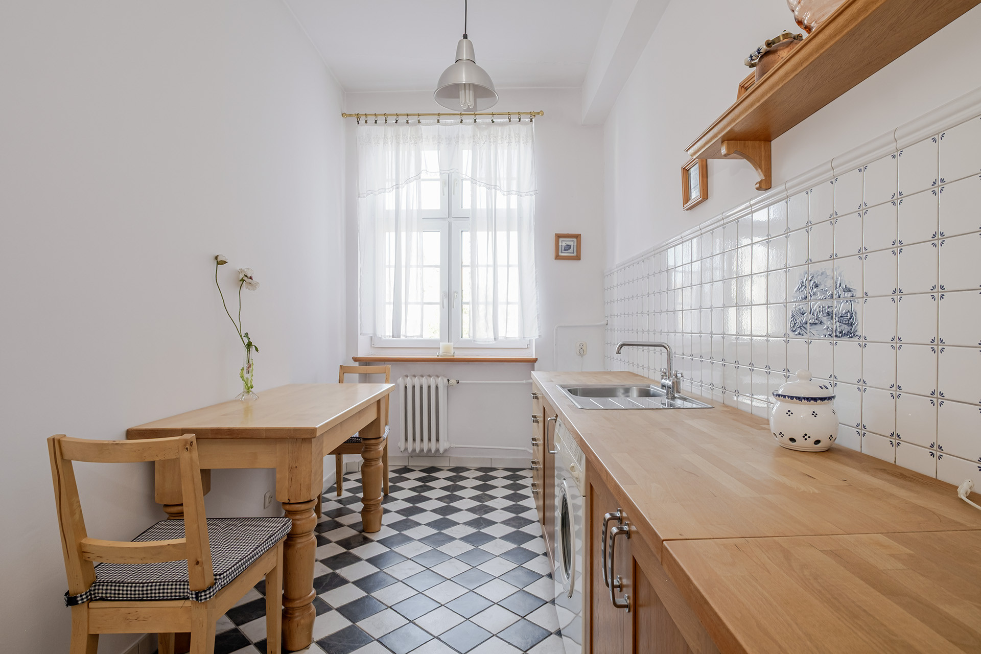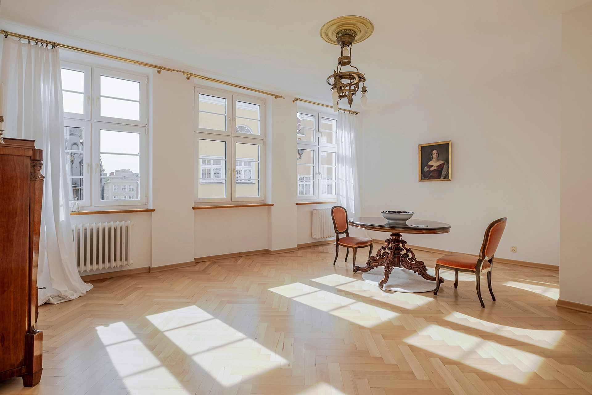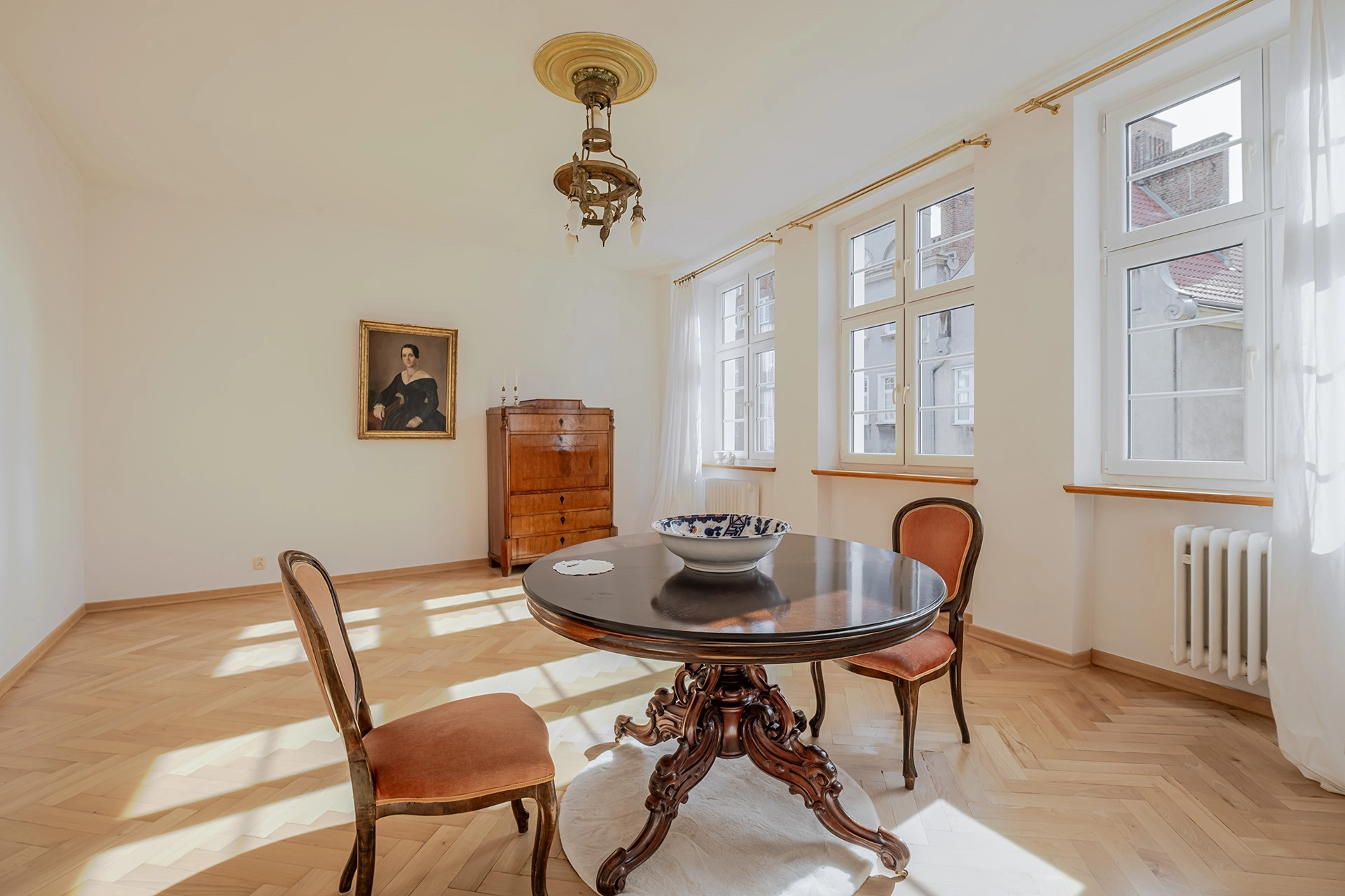 Wysokość mieszkania ponad 3m, wykończone bardzo gustownie – drzwi, framugi, podłogi, umeblowanie wykonane z litego drewna. Istnieje możliwość wydzielanie mieszkania na 4 niezależne pokoje.