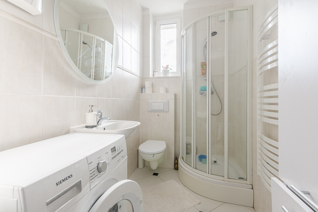 – łazienka z WC: Wyposażona w prysznic, funkcjonalnie zorganizowana.