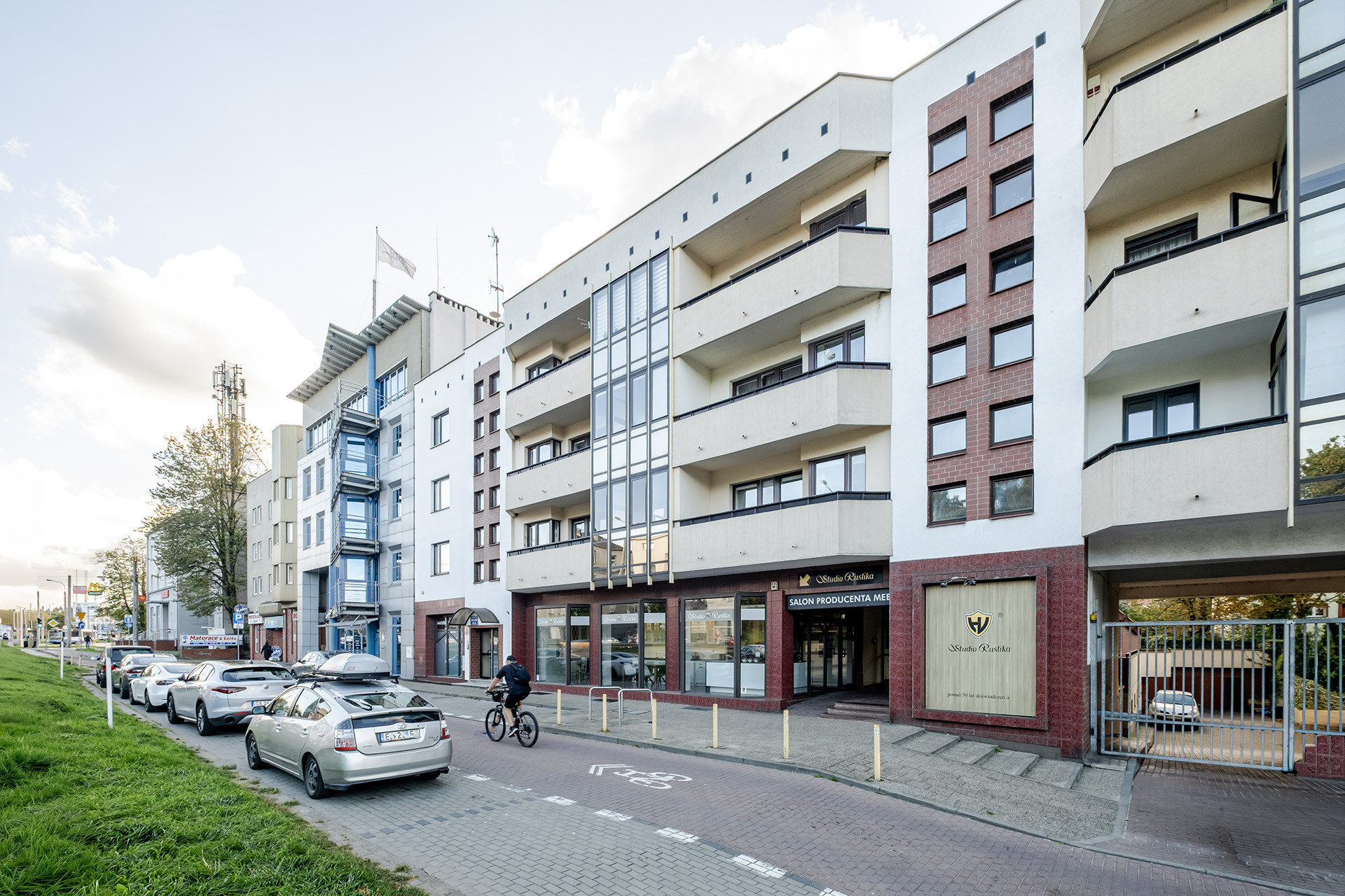 Budynek posiada windę oraz domofon. Wokół znajduje się zagospodarowana przestrzeń z zielenią oraz miejsca postojowe ogólnodostępne.