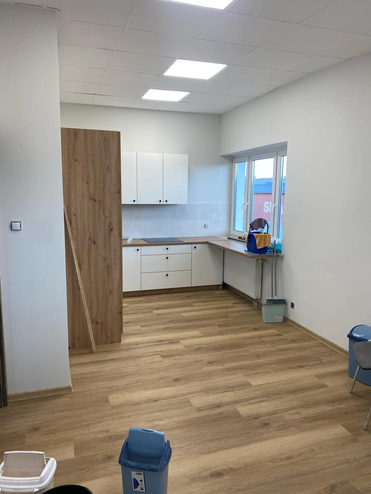 Lokal o powierzchni 252 m2 znajduje się na  I piętrze budynku i składa się z częsci open space o powierzchni 152m2 i 3 pomieszczeń biurowych (40m2, 24m2 i 17m2), kuchni oraz łazienek.
