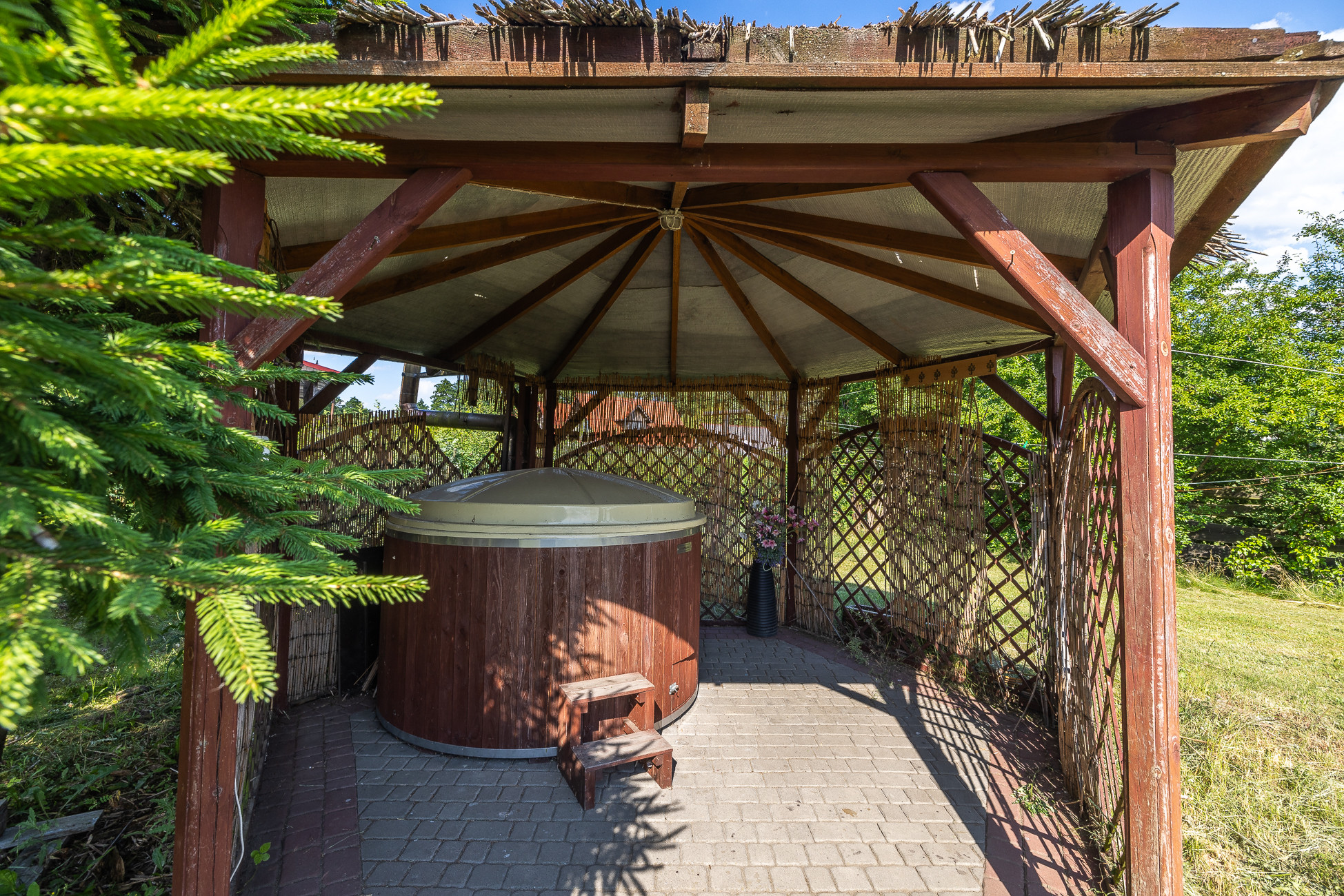 Wokół budynku rozpościera się ogród, a w nim do dyspozycji gości miejsce na grilla, altana do spotkań na świeżym powietrzu, zewnętrzne jacuzzi oraz plac zabaw dla dzieci. Poza tym mamy tutaj 30 miejsc parkingowych.