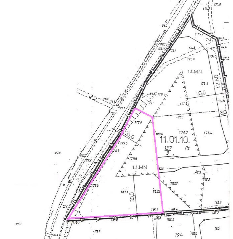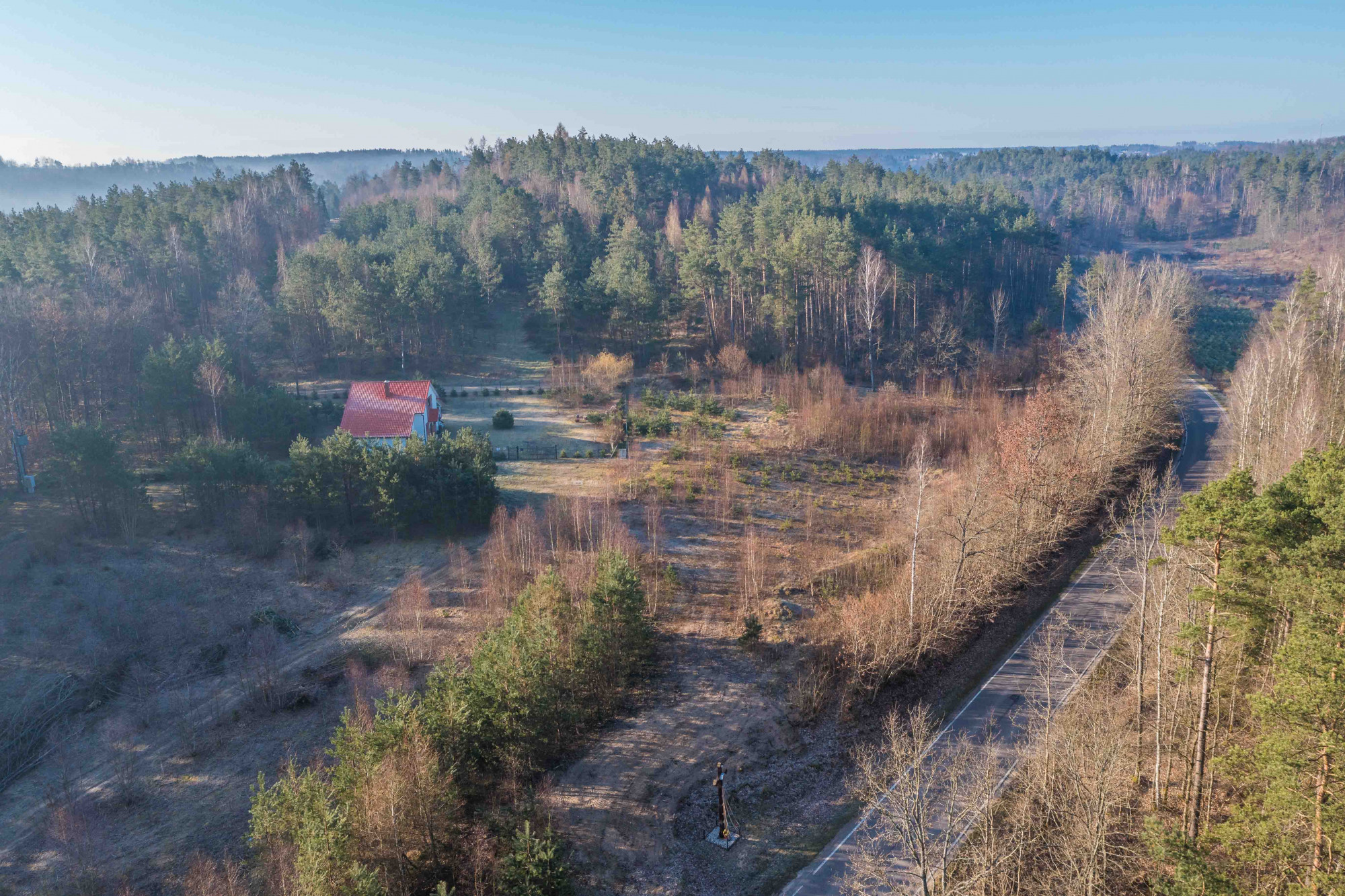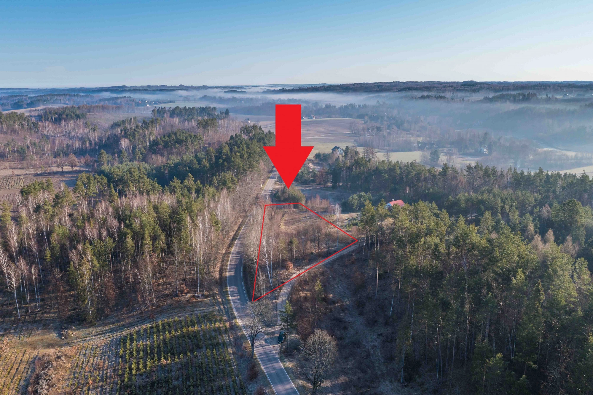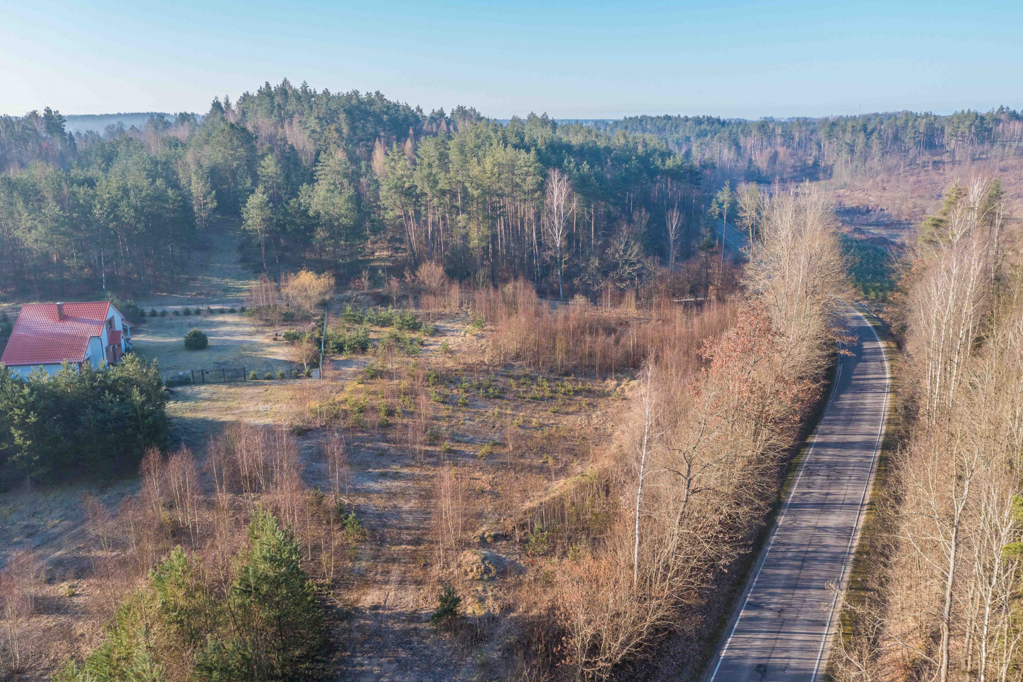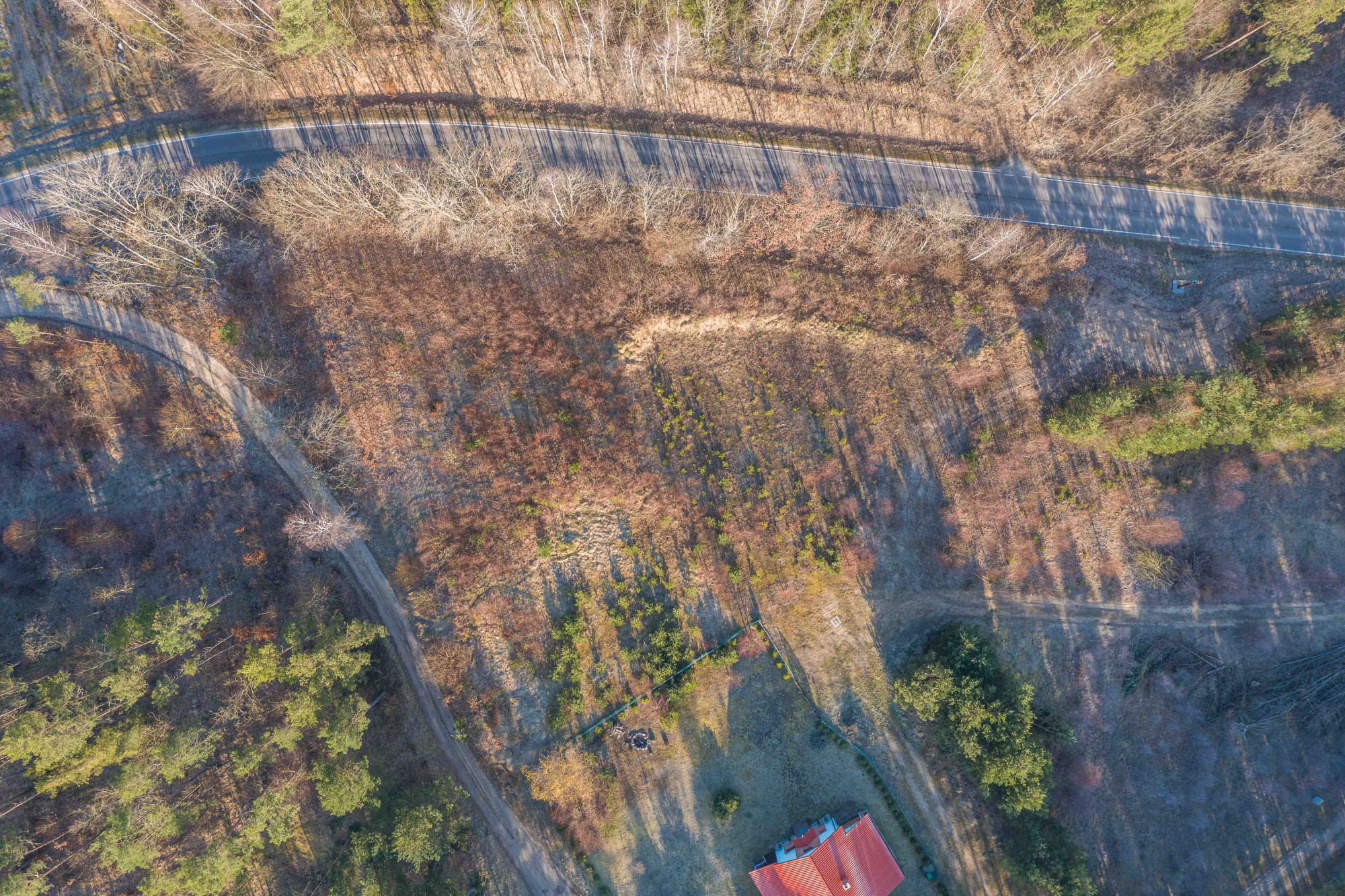 Na sprzedaż działka o powierzchni 3391m2, w kształcie trójkąta. Dojazd do działki drogą polną (ok. 50m od drogi asfaltowej). Teren lekko nachylony, porośnięty krzewami i niskimi drzewami. Brak ogrodzenia.