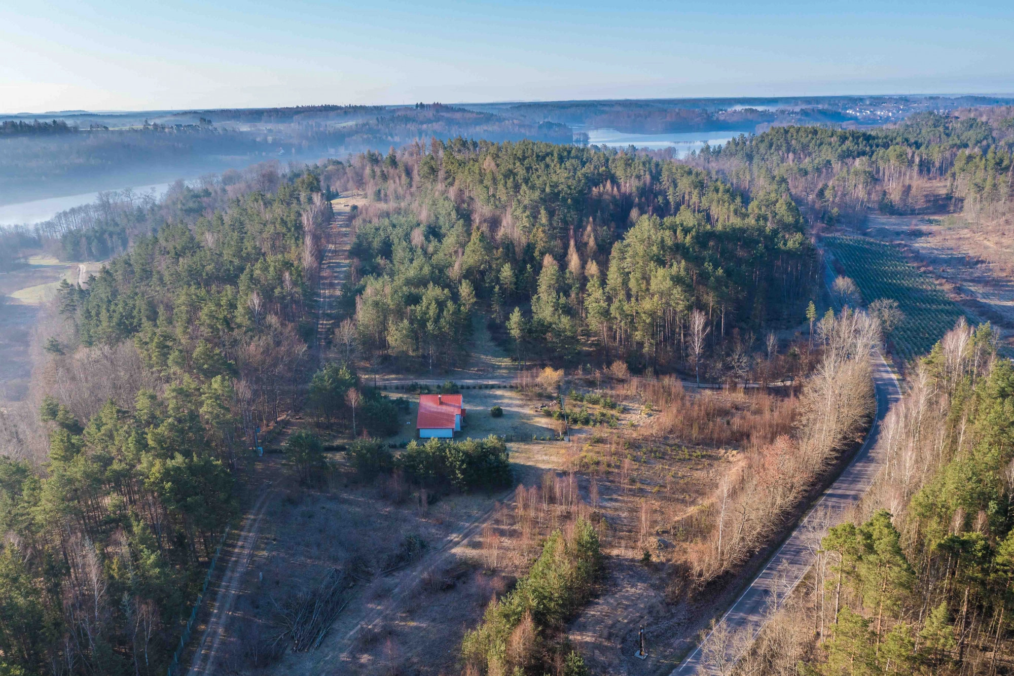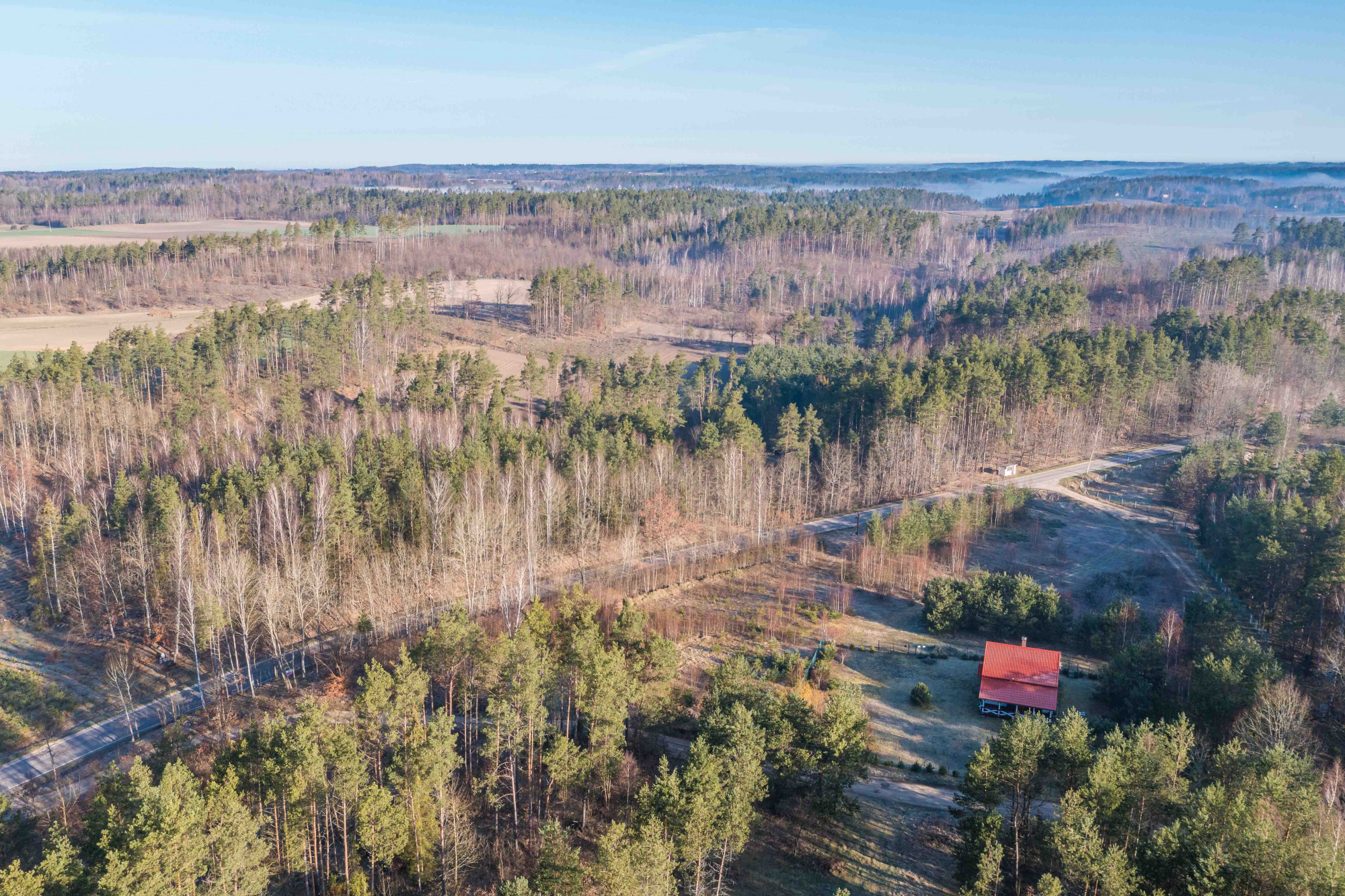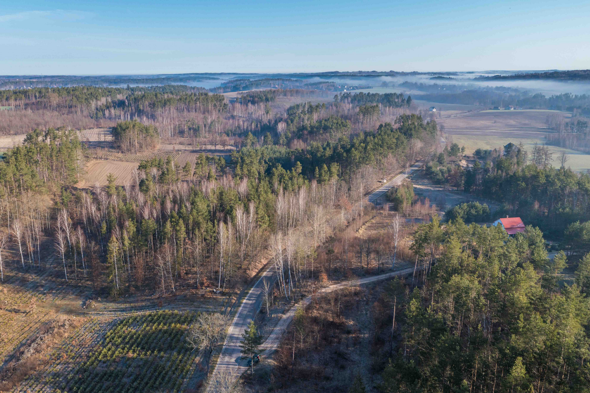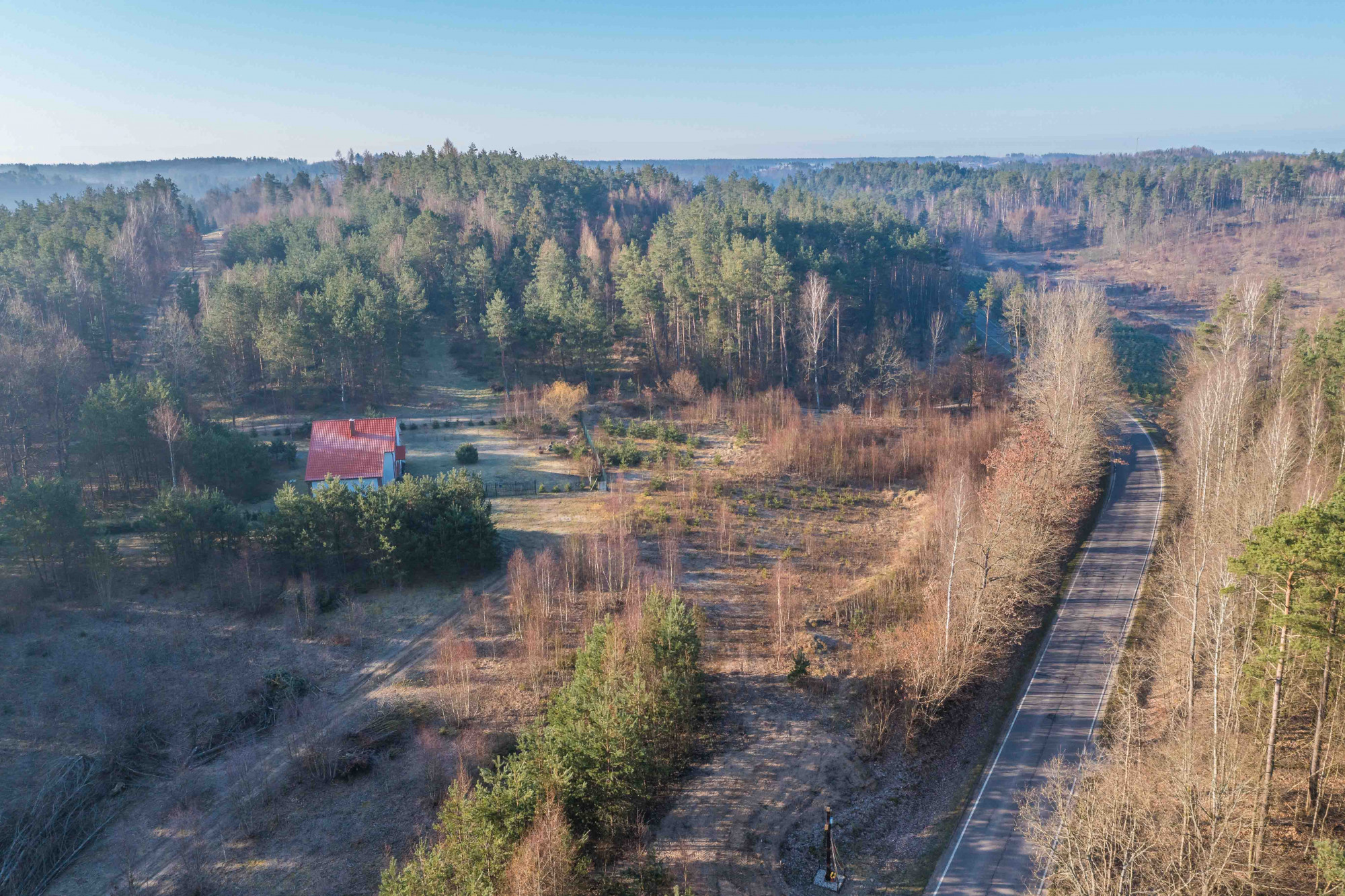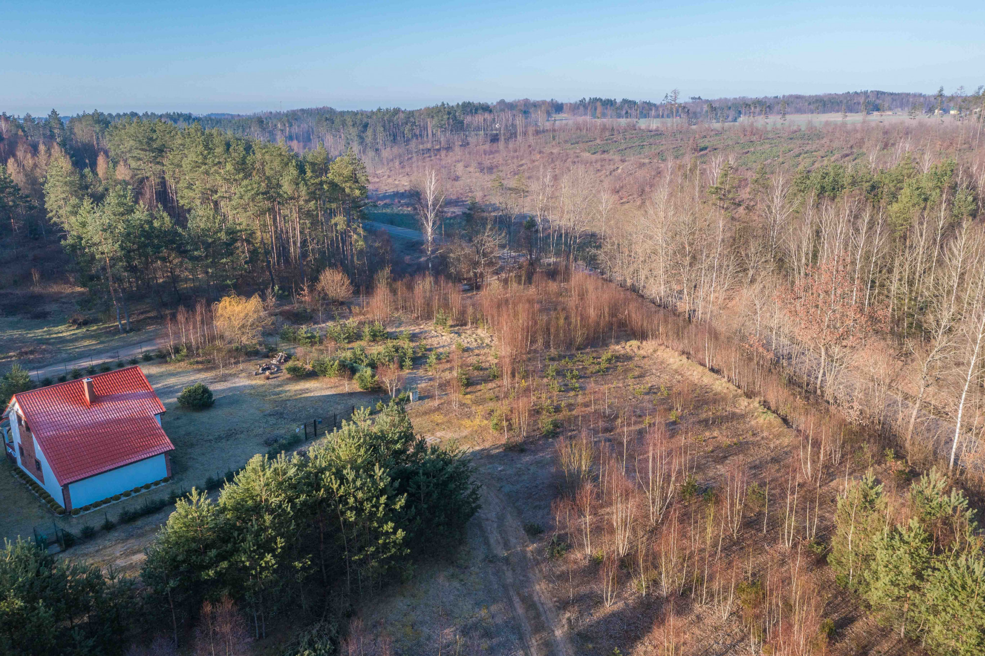 Na sprzedaż działka o powierzchni 3391m2, w kształcie trójkąta. Dojazd do działki drogą polną (ok. 50m od drogi asfaltowej). Teren lekko nachylony, porośnięty krzewami i niskimi drzewami. Brak ogrodzenia.