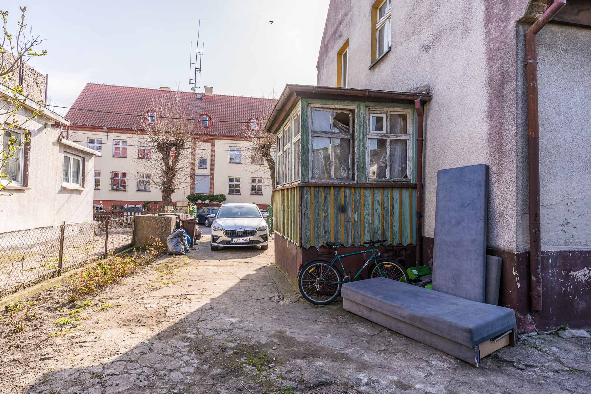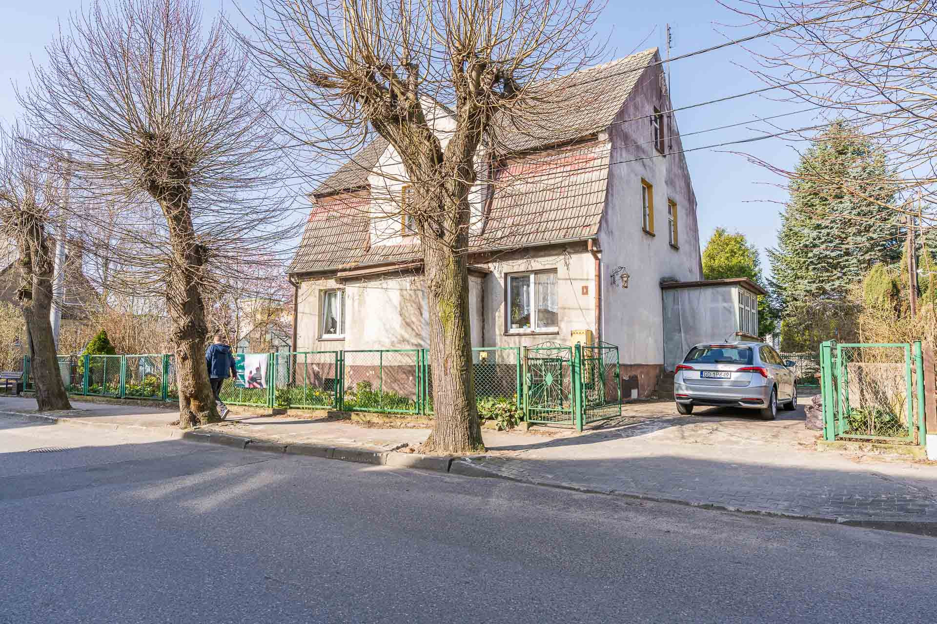 Mieszkanie znajduje się na parterze budynku z 1930 roku. Budynek wybudowany z cegły, na dachu- dachówka ceramiczna. Do mieszkania przynależą dwa ogrody-  łącznie aż 450m2! Z przodu budynku- dekoracyjny oraz z tyłu budynku rekreacyjny. Na terenie posesji miejsce parkingowe dla samochodu oraz garaż typu blaszak. Dodatkowo obecni właściciele dzierżawią od miasta dodatkowy fragment działki o powierzchni 127m2 (150 zł/rok). Istnieje możliwość przejęcia tej dzierżawy.