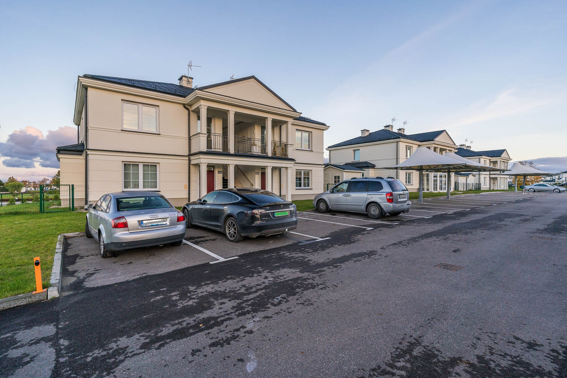 Kompleks gwarantuje mieszkańcom absolutne poczucie bezpieczeństwa- teren jest ogrodzony, monitorowany, posiada też mobilną ochronę przez 24h na dobę.