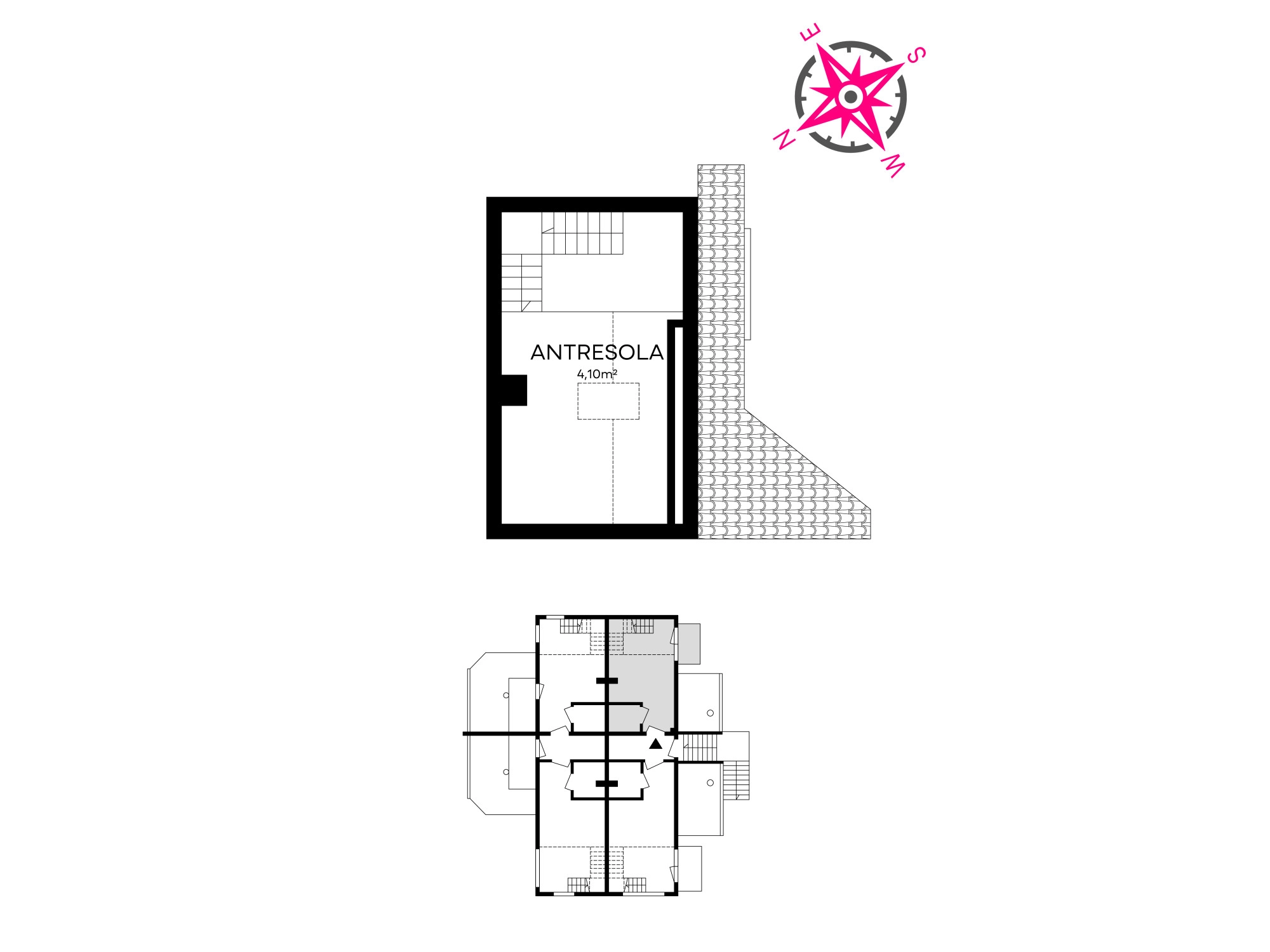 – antresoli z oknem dachowym o powierzchni całkowitej 13,75 m2, powierzchni użytkowej 4,10 m2,