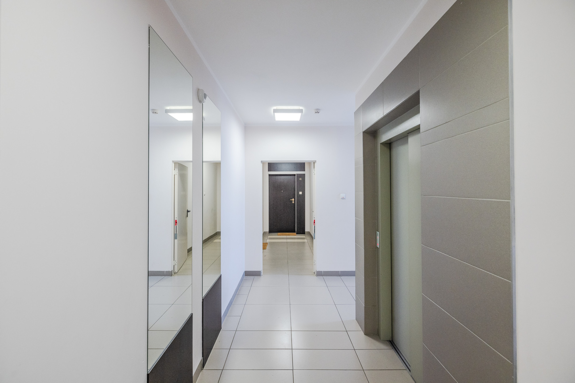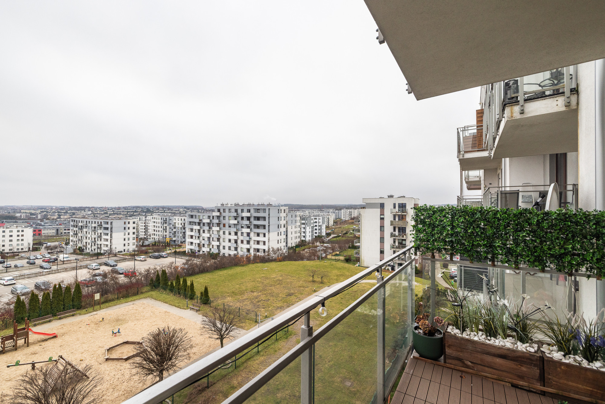 Budynek z 2012 roku od cenionego dewelopera ROBYG, w którym znajduje się mieszkanie, został wykończony z użyciem solidnych materiałów. Wyposażony jest w cichobieżną windę, drewnianą stolarkę okienną oraz domofon. Całe osiedle to nowoczesna, estetyczna zabudowa z zadbanymi częściami wspólnymi, które zapewniają mieszkańcom komfort oraz poczucie bezpieczeństwa.