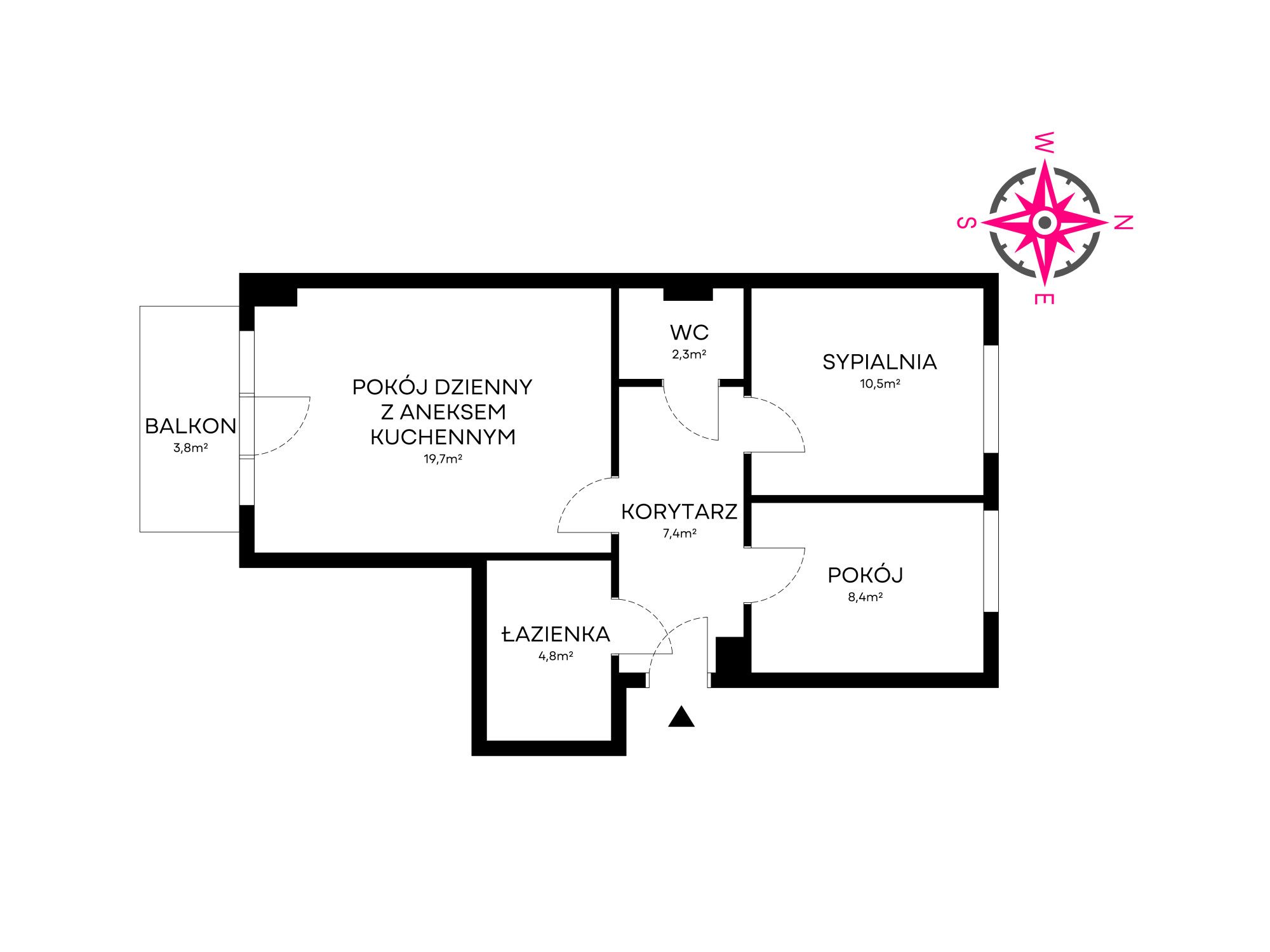 – przedpokój (7,4 m²)