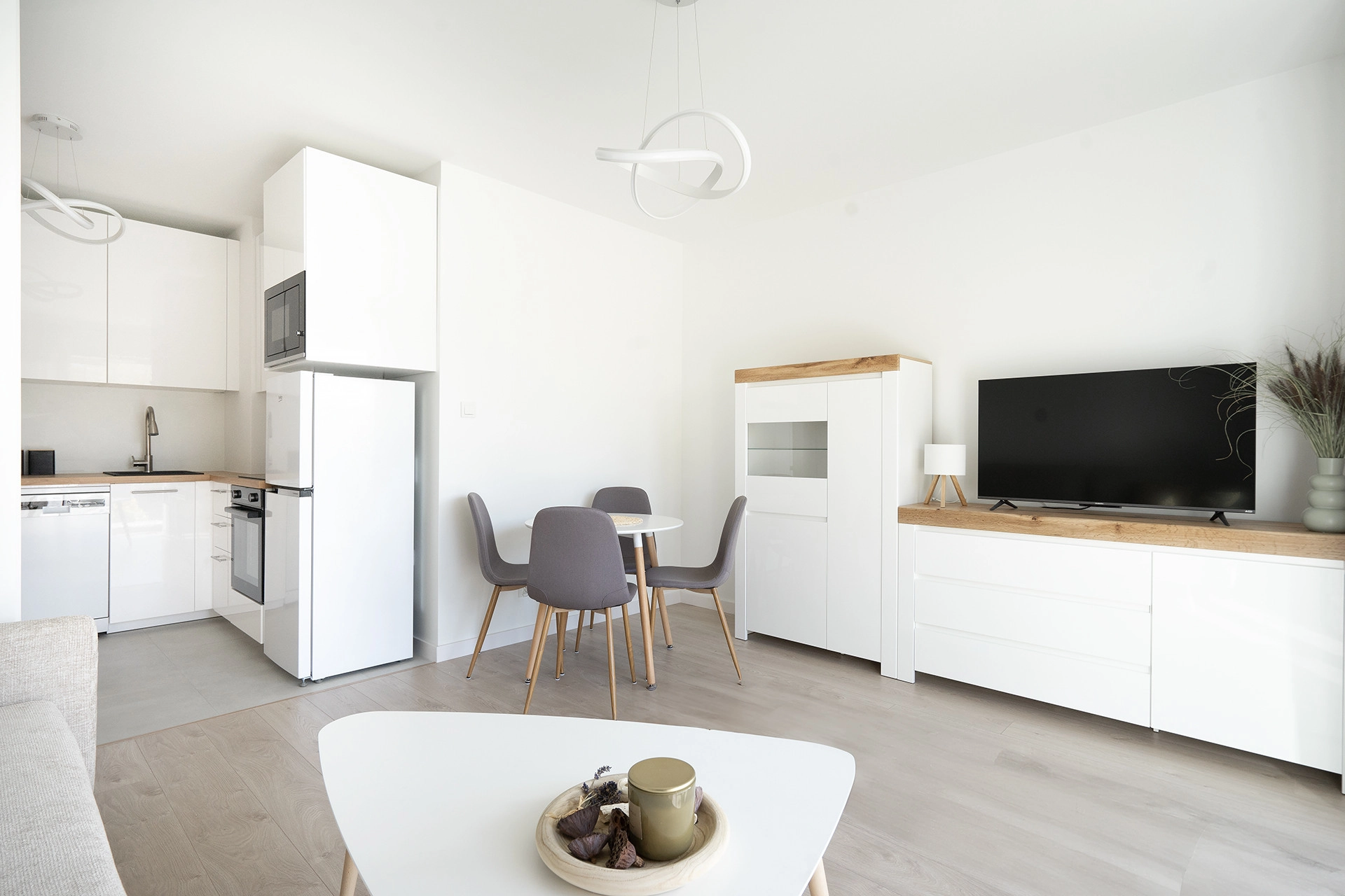 – w pełni wyposażony salon z aneksem kuchennym 18,27 m2