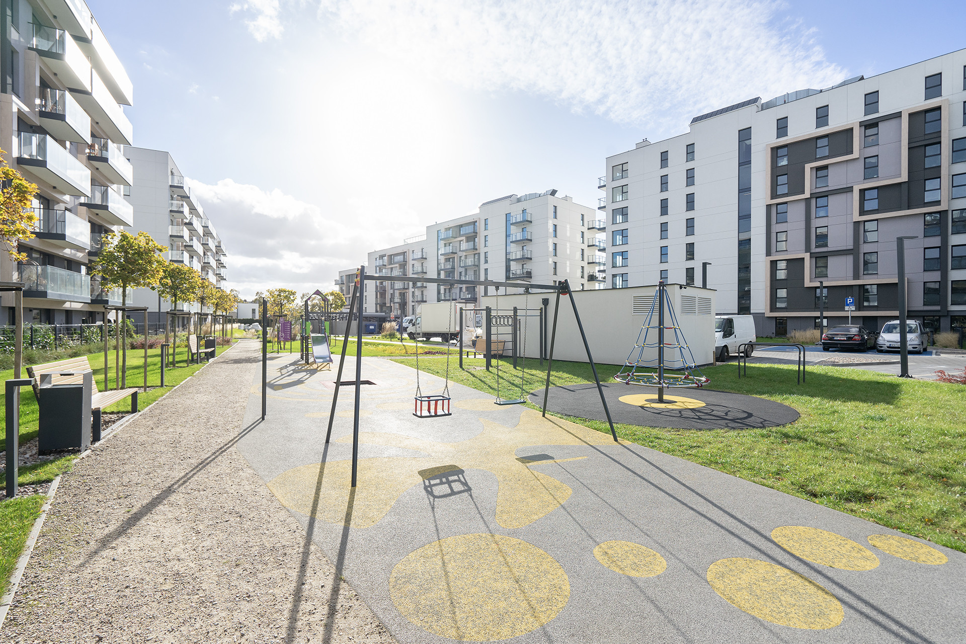 Wybudowany w 2024 roku. Teren wokół budynku jest ogrodzony, co zapewnia bezpieczeństwo i prywatność mieszkańcom, a wjazd na posesję odbywa się przez szlaban. Klatka schodowa jest przestronna, czysta i dobrze utrzymana, a dostęp do niej zabezpieczony jest domofonem, co dodatkowo podnosi komfort i poczucie bezpieczeństwa mieszkańców