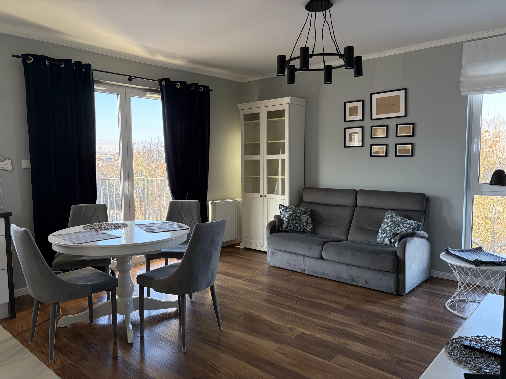 – Przestronny pokój dzienny funkcjonalnie urządzony z wyjściem na wygodny i przestronny balkon od strony zachodniej, aneks kuchenny, wyposażonym w pełny sprzęt AGD oraz TV