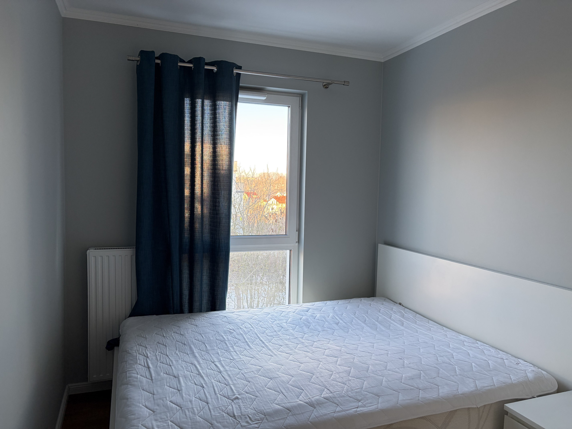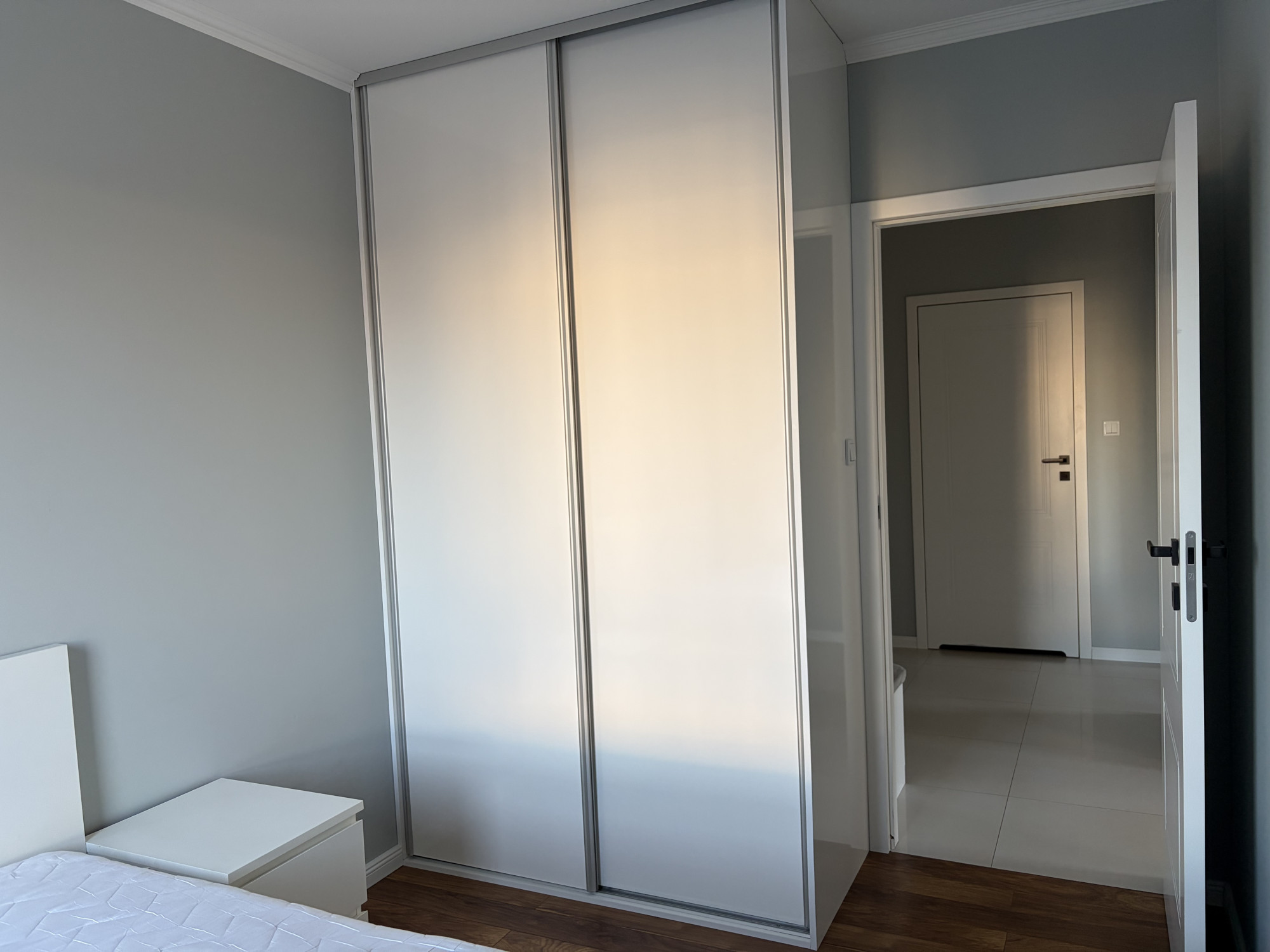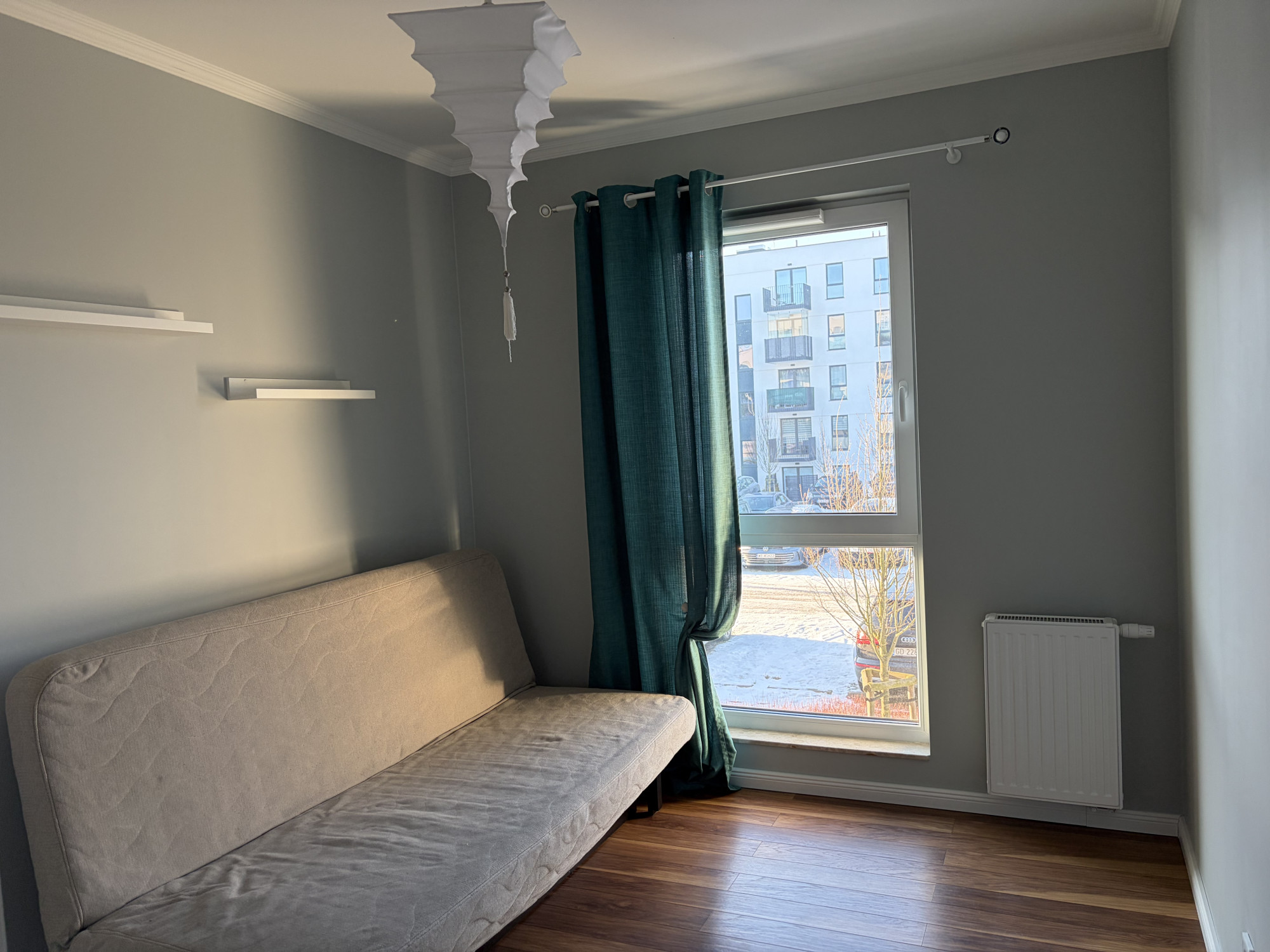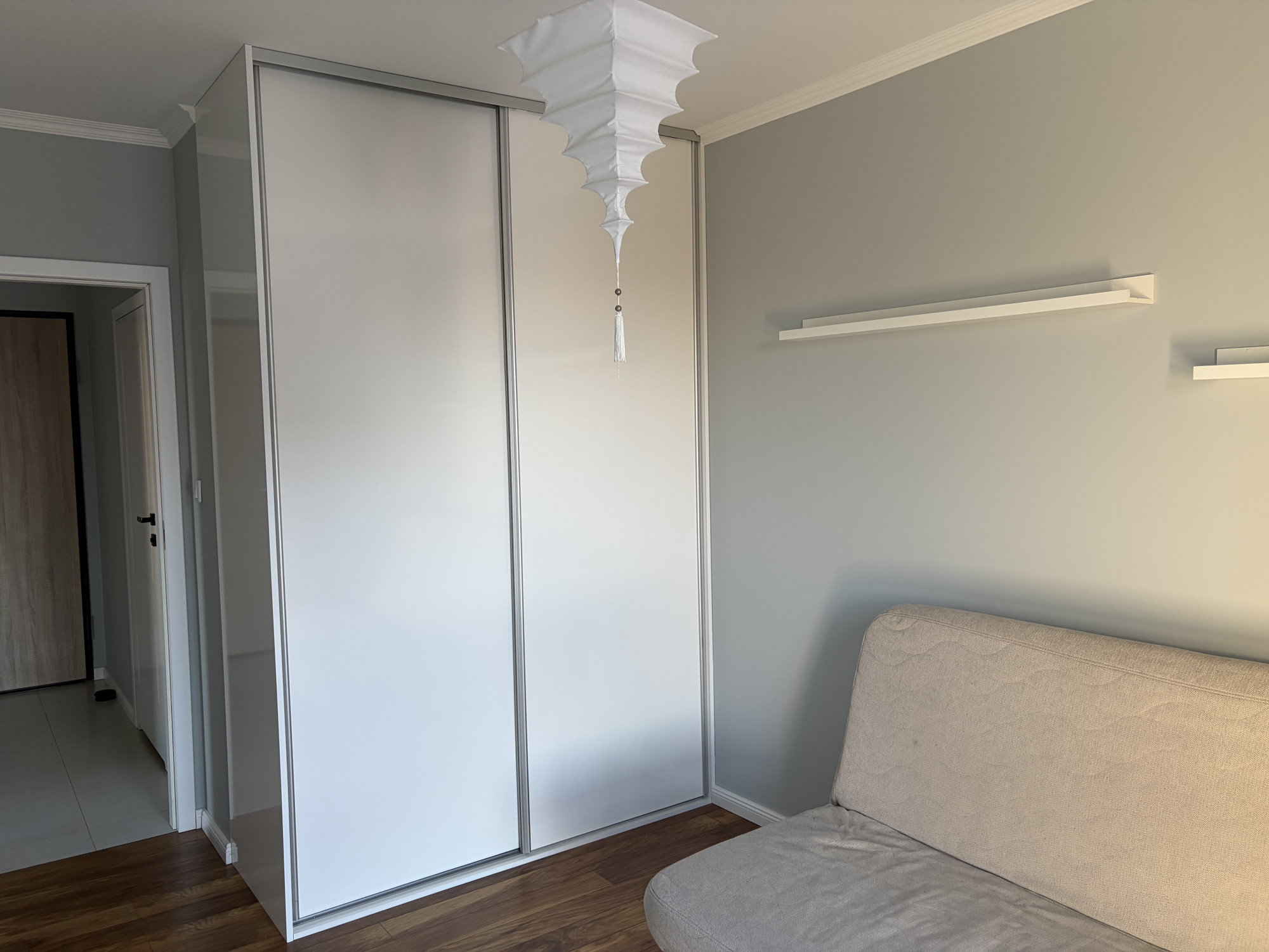 – Pokój z szafą w zabudowie i rozkładaną wersalką.