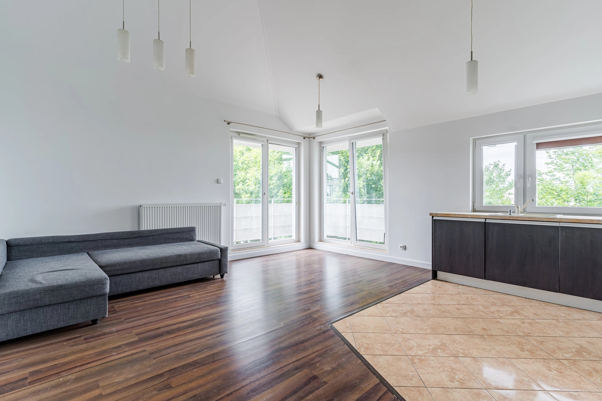– salon z aneksem kuchennym i wyjściem na balkon