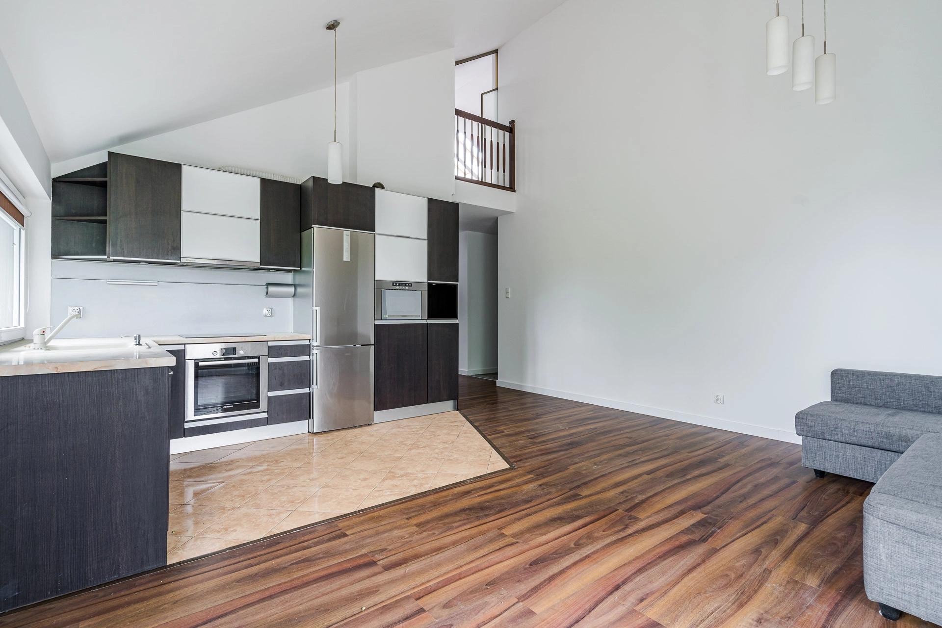 Położone na ostatnim piętrze w 3 piętrowym budynku o łącznej powierzchni całkowitej 88m2. Wysoki sufit (w najwyższym punkcie 5m) sprawia, że mieszkanie jest bardzo przestronne i unikatowe.