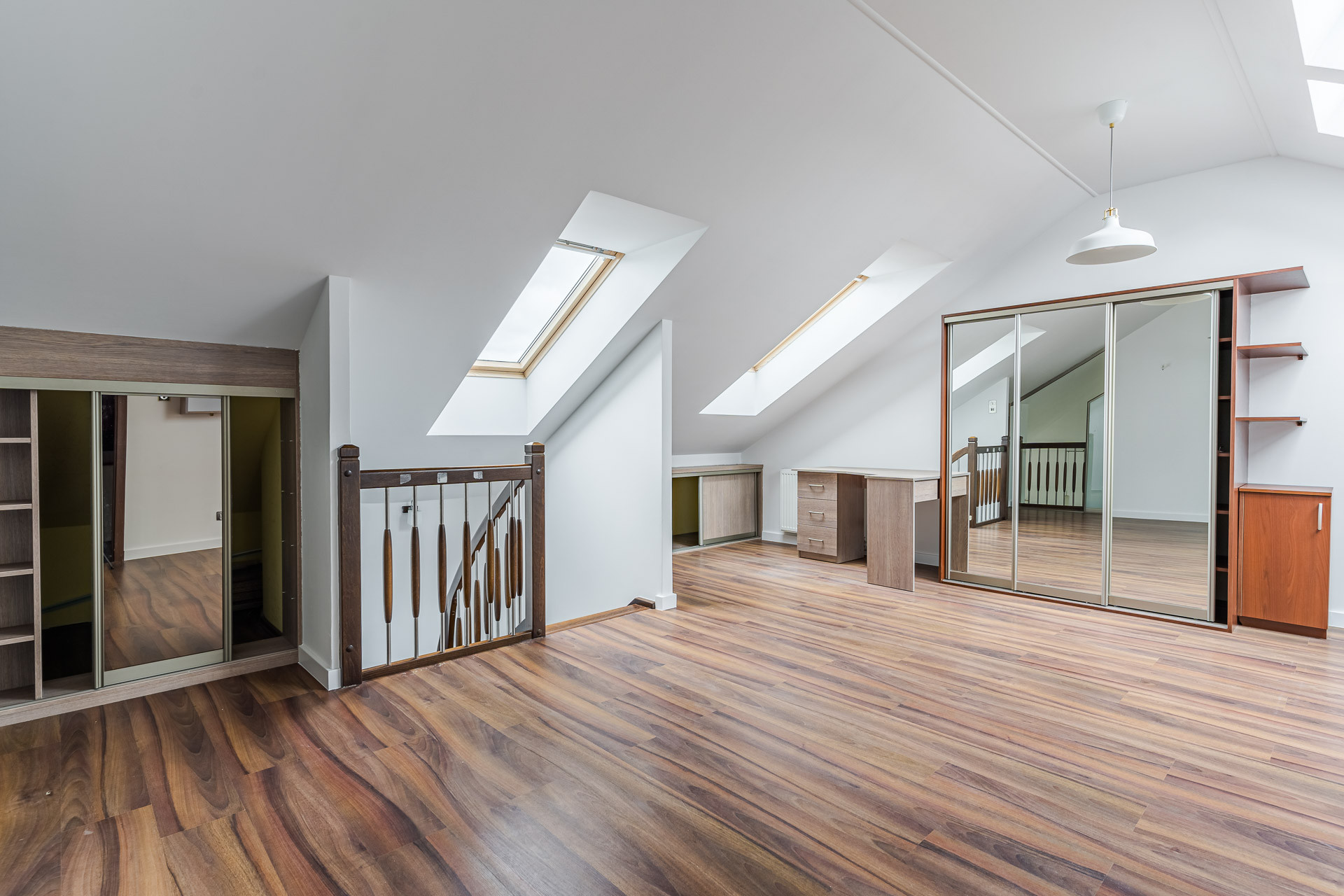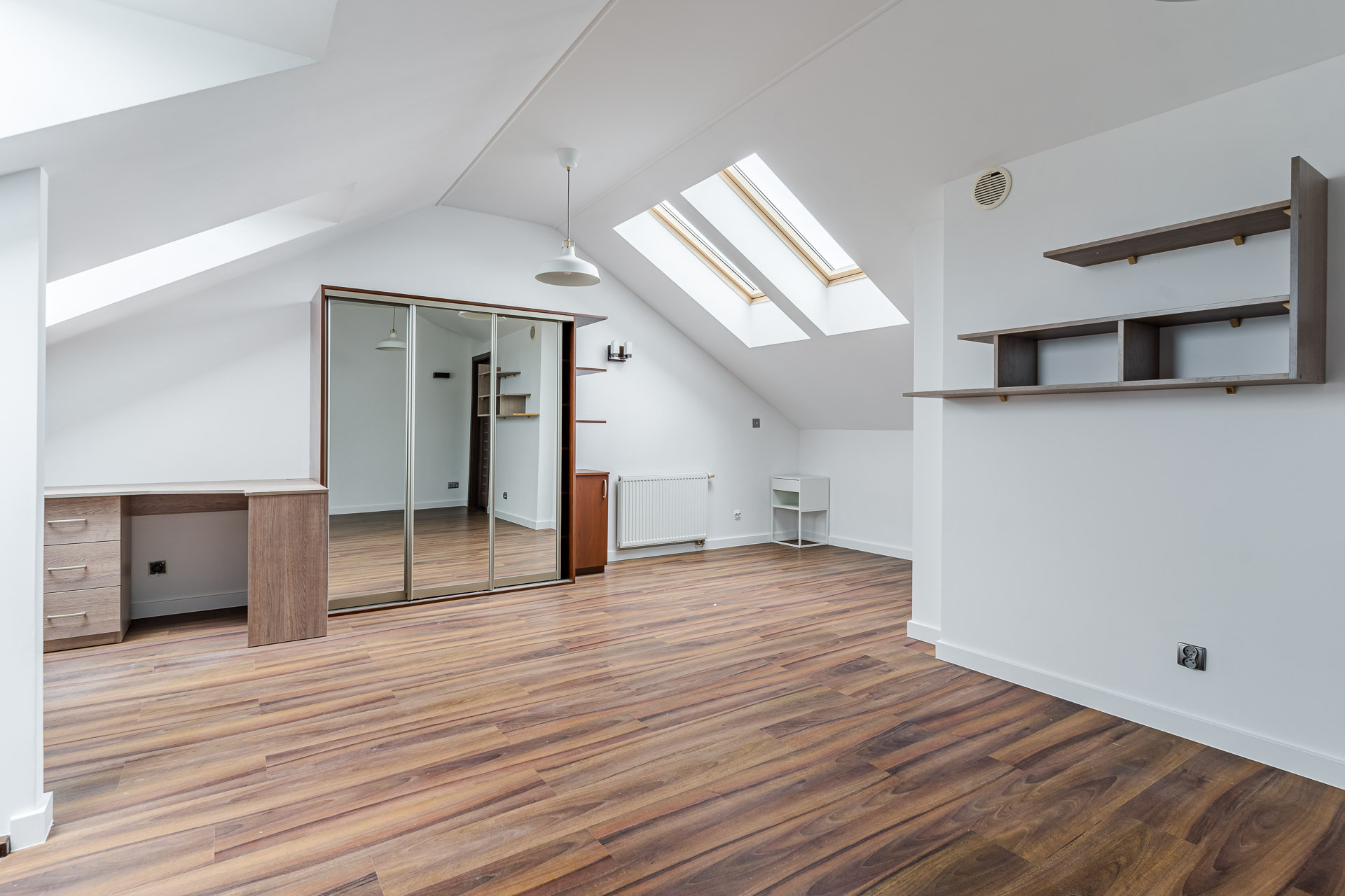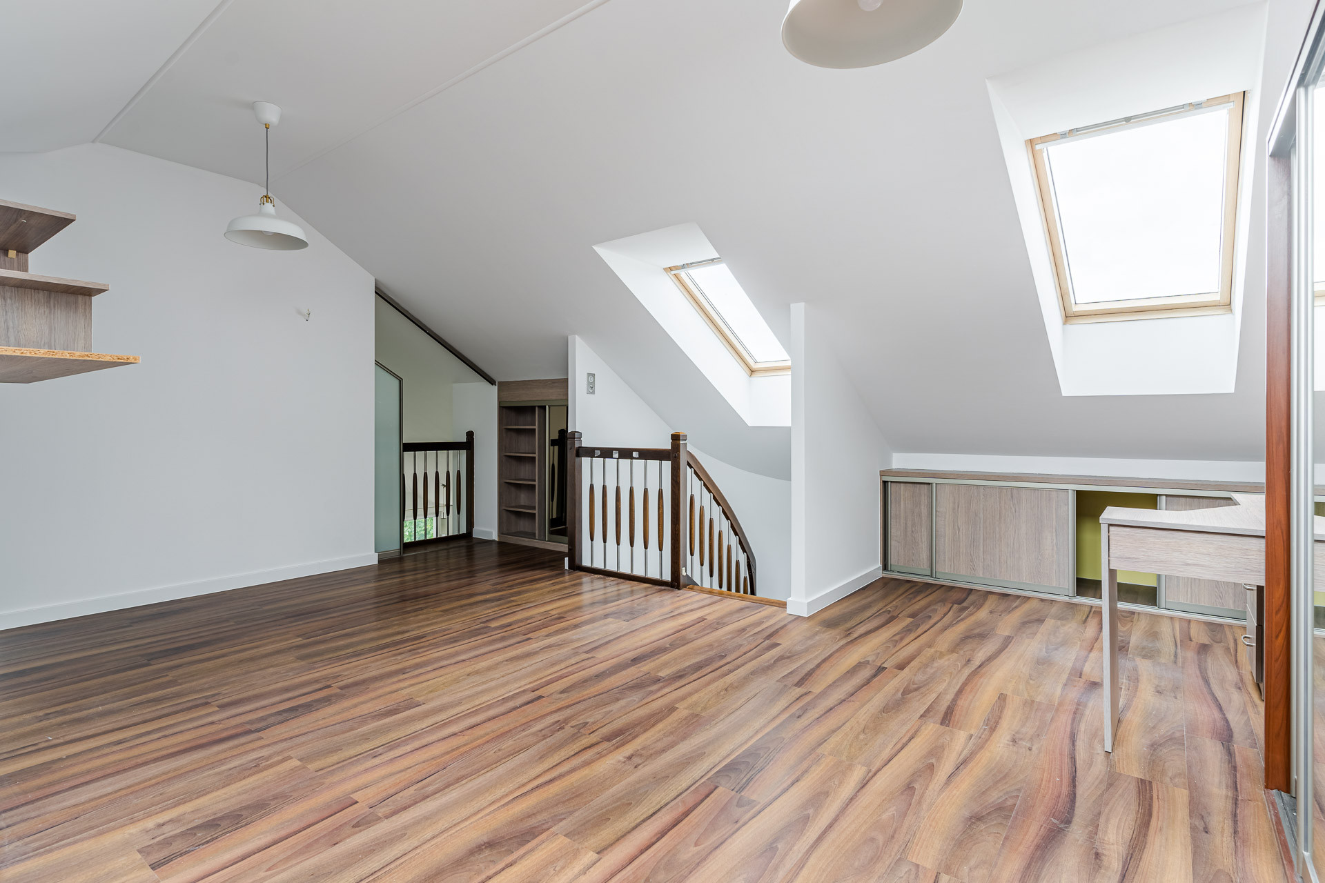 Ogromnym atutem jest możliwość podzielenia przestrzeni na piętrze na dwa niezależne pokoje.