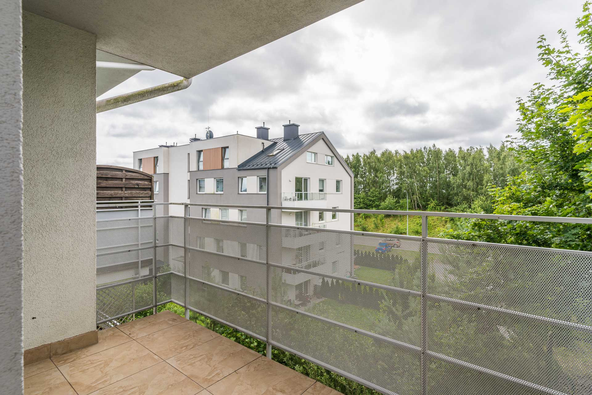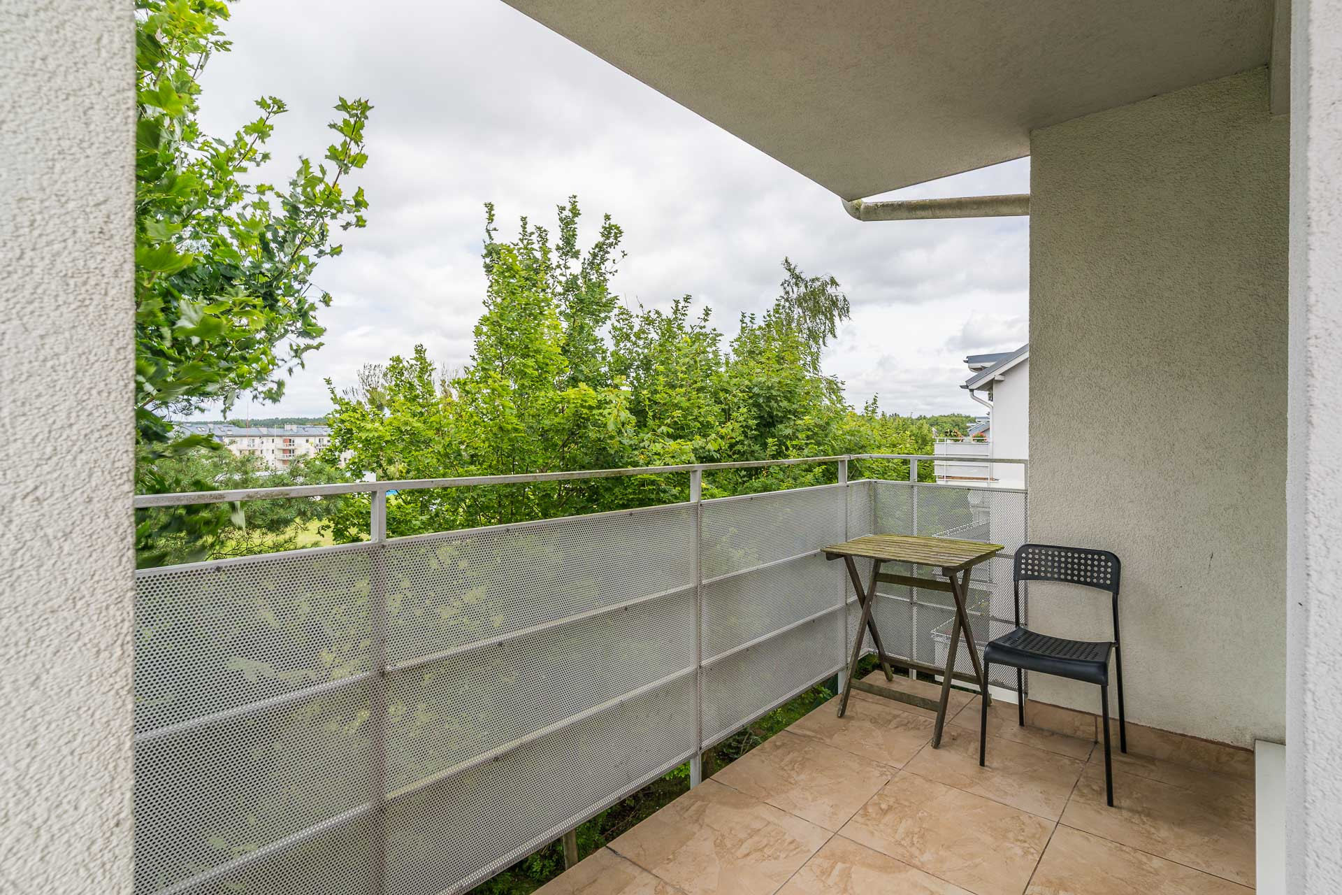 Balkon z ekspozycją południowo-zachodnią z widokiem na zieleń zapewnia intymność i stwarza wyjątkową przestrzeń do relaksu.