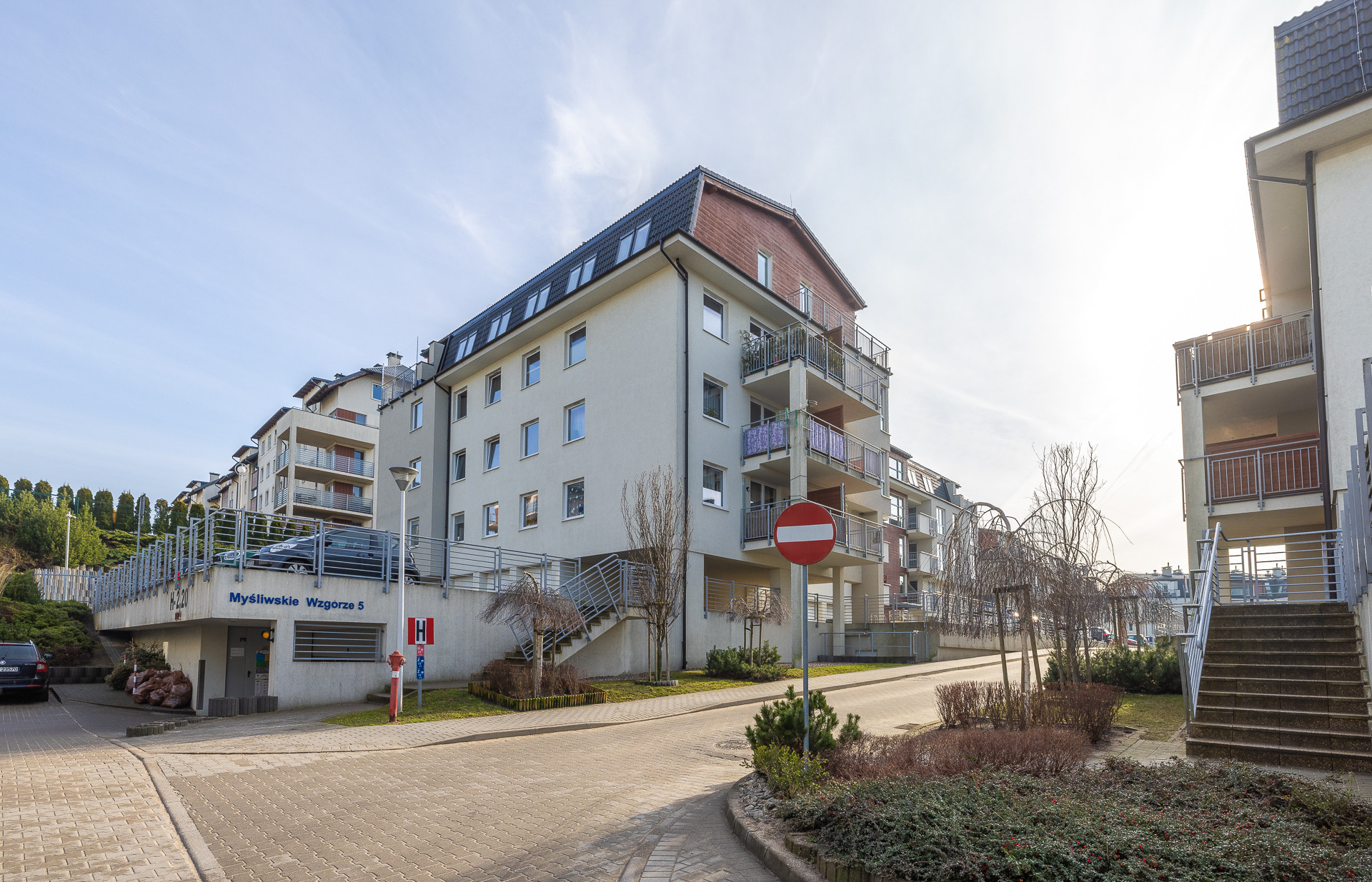 Mieszkanie o powierzchni 42,10 m2. Usytuowane jest na 4 piętrze w bloku czteropiętrowym przy ulicy Myśliwskie Wzgórze. Do mieszkania przynależy balkon oraz komórka lokatorska na poziomie -1 ( 3,80 m2).