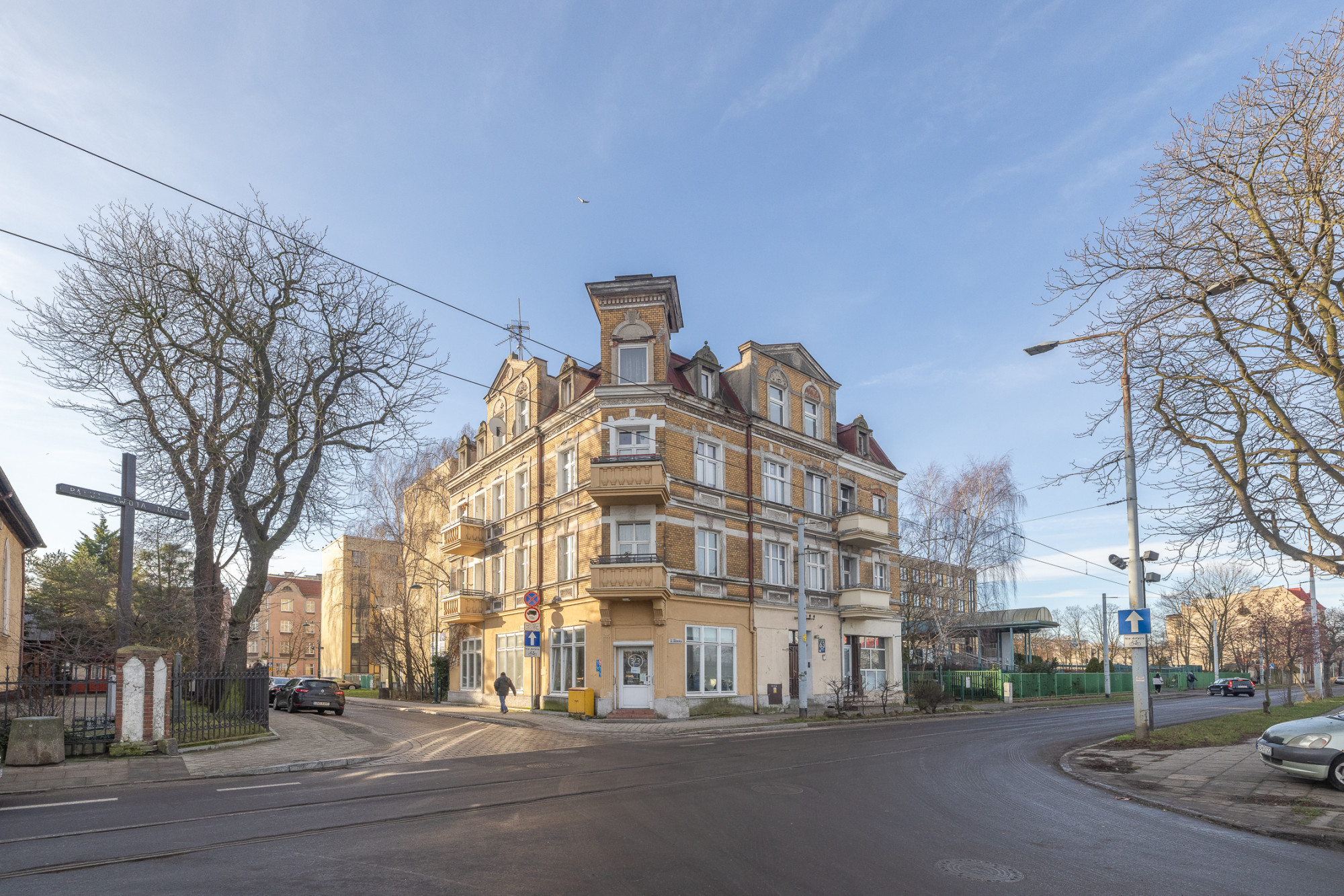 BUDYNEK: mieszkanie mieści się na 1. piętrze w 3-piętrowej kamienicy wzniesionej w 1903 roku, którą wykonano z cegły, a dach pokryto papą. Ogólny stan całej nieruchomości należy uznać za dobry. Wejście do klatki schodowej zabezpieczone jest domofonem. W pobliżu nieruchomości znajdziemy ogólnodostępne miejsca postojowe.