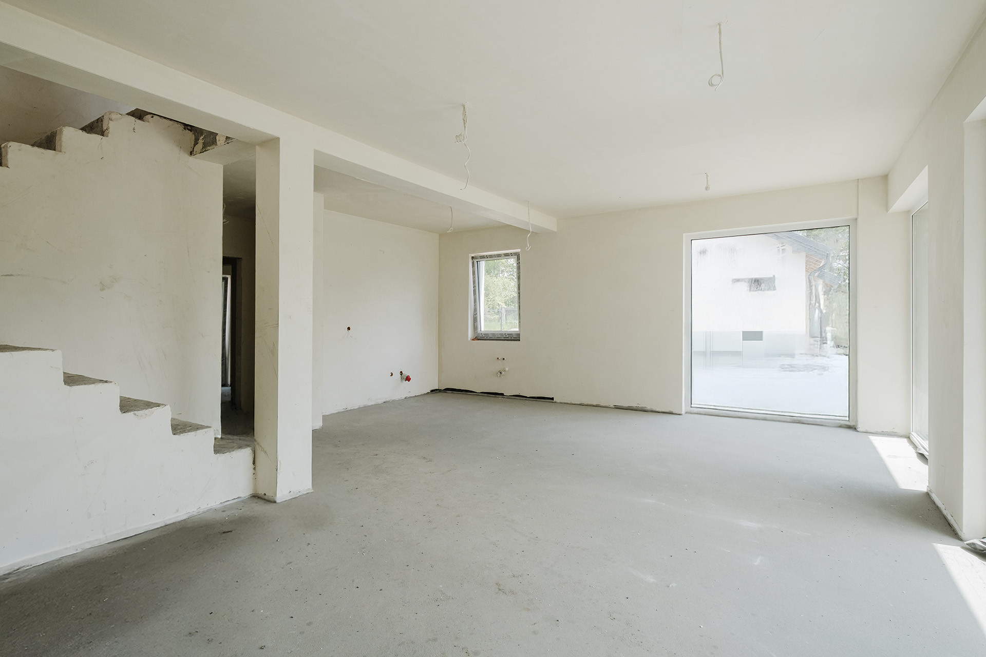 Powierzchnia całkowita wynosi 120m² (nie uwzględniając poddasza z oknem, które można zaadaptować). Dom jest w stanie deweloperskim, na ostatnim etapie budowy, a jego układ zapewnia komfortowe warunki dla całej rodziny.