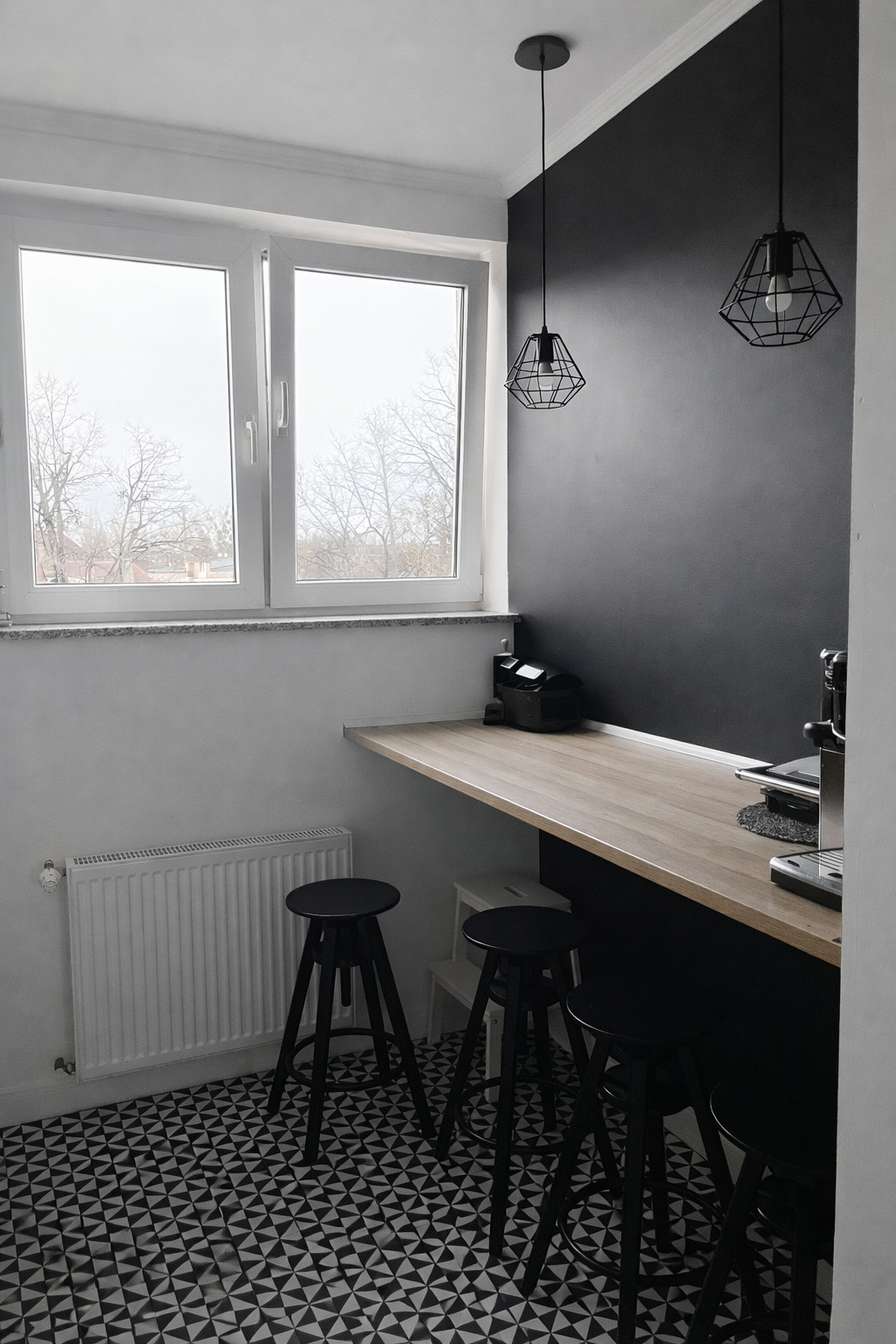 – kuchnia (6,90 m2) z meblami w zabudowie, wyposażeniem w sprzęt AGD i oknem,