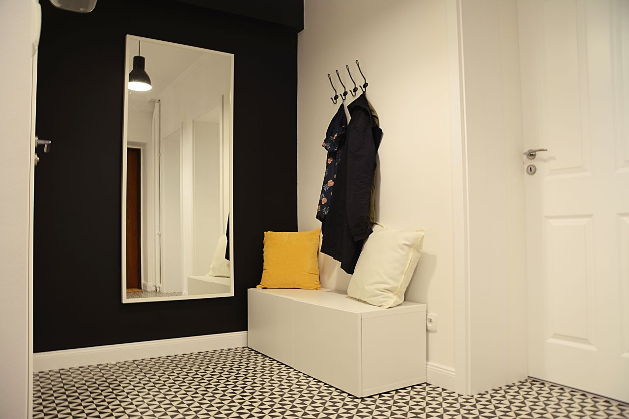 – łazienka (5,10 m2) z WC, prysznicem, umywalką, lustrem, grzejnikiem drabinkowym oraz oknem,