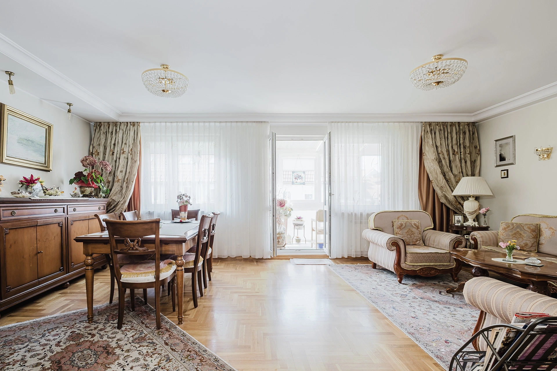 – Reprezentatywny salon z wyjściem na zabudowany balkon,
