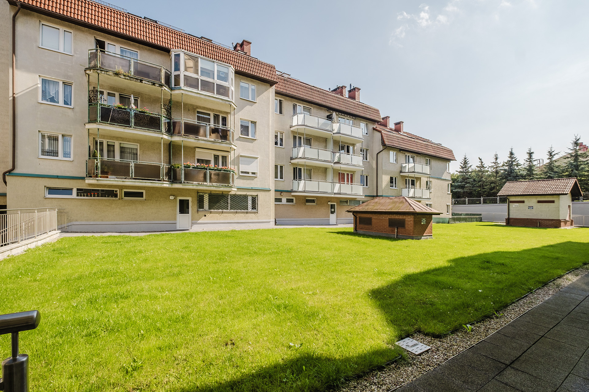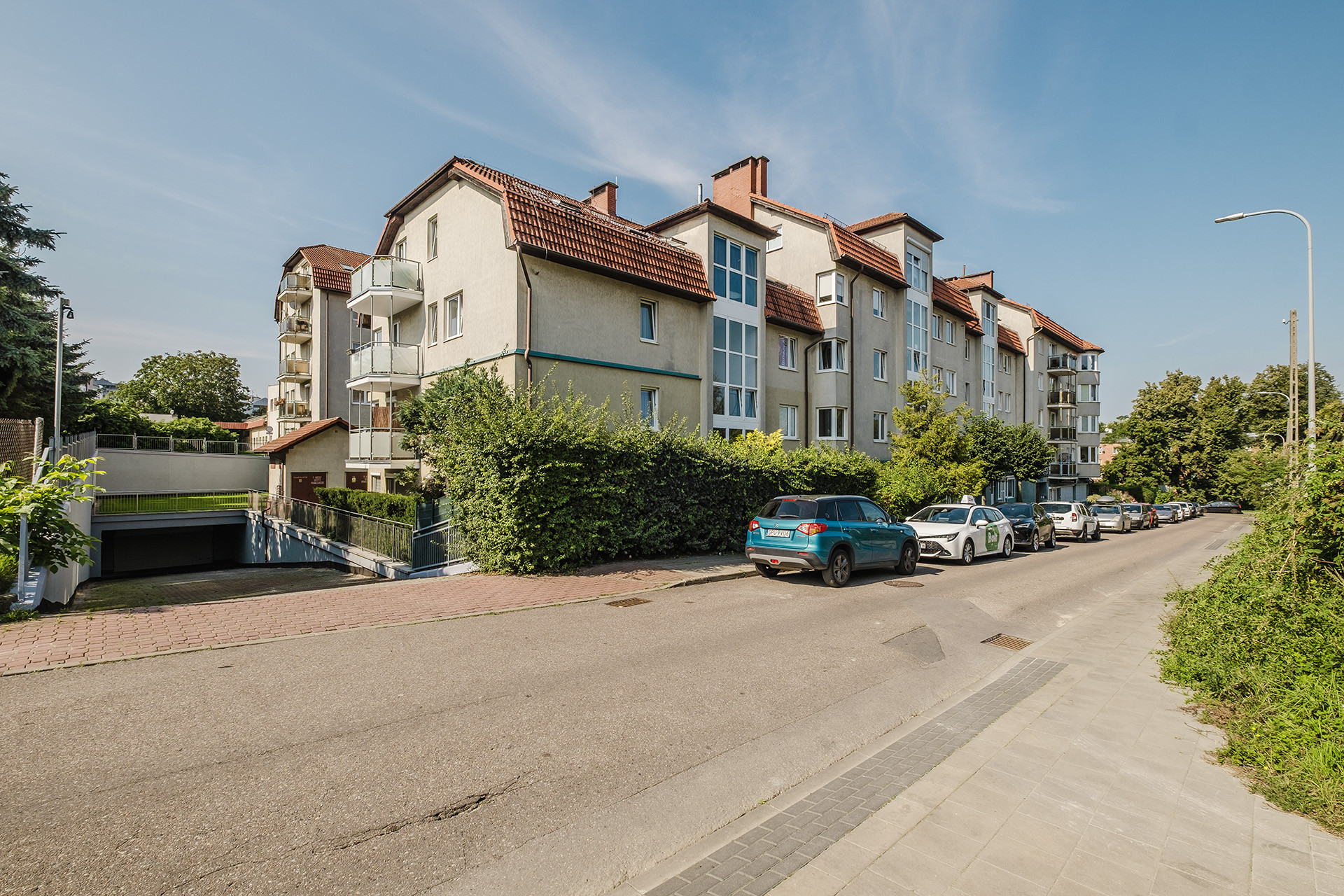 Mieszkanie mieści się na 3 (ostatnim) piętrze budynku wzniesionego w 1998 roku przez cenionego dewelopera Hossa. Budynek jest bardzo zadbany, wspólnota prężnie działa nad usprawnieniami i bieżącymi naprawami. W najbliższej przyszłości będą zainstalowane panele fotowoltaiczne. Zaplanowano też renowację całej elewacji. Wejście do budynku zabezpieczone jest domofonem.