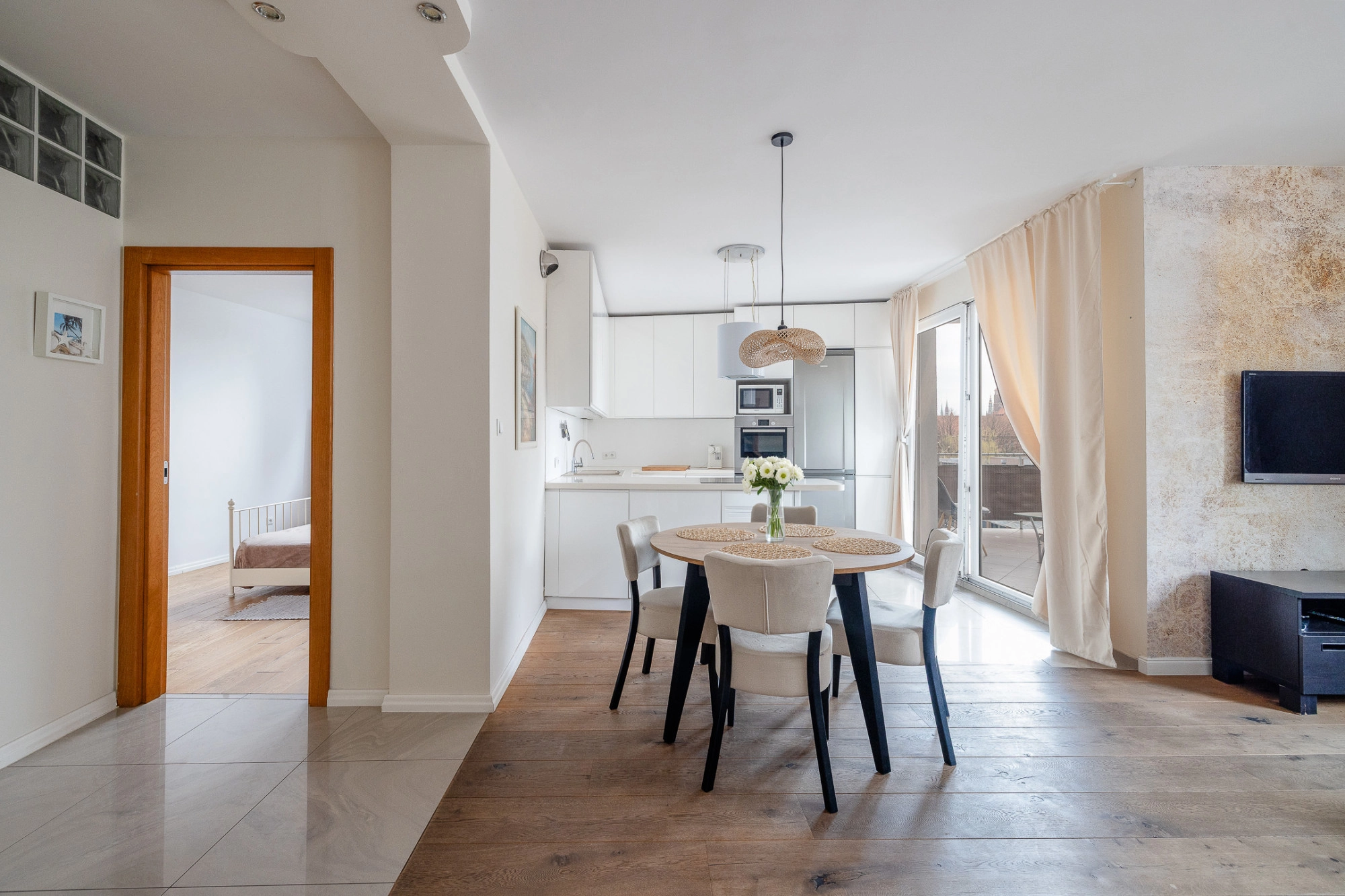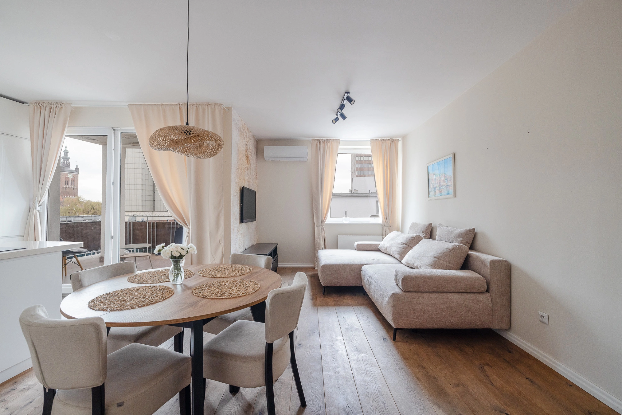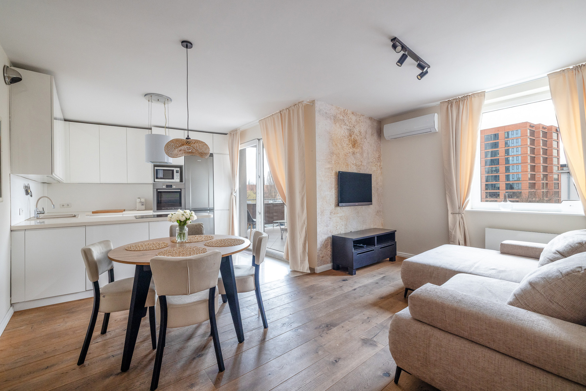 przestronny pokój dzienny z aneksem kuchennym